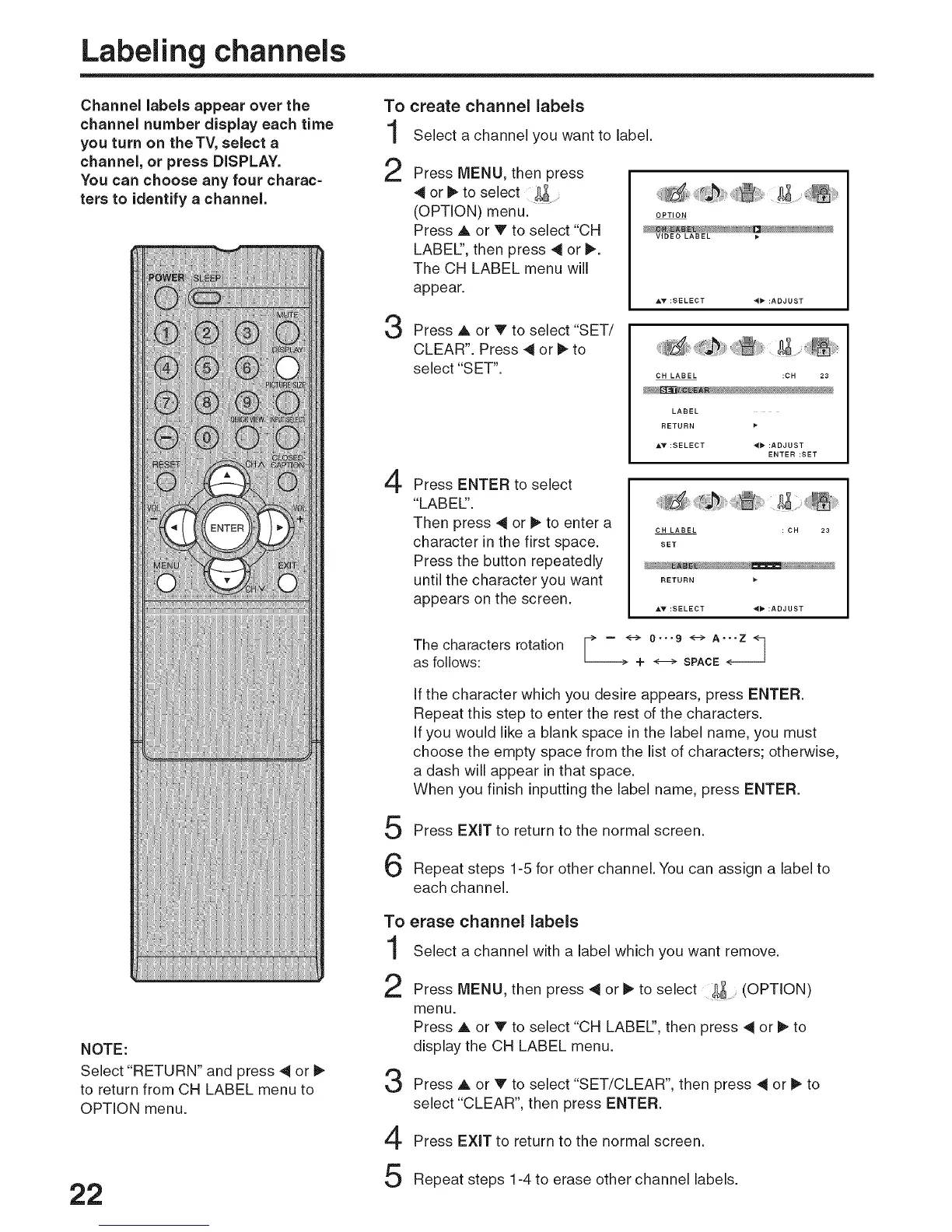 Press A or V to select "CH LABEl", then press 4 or I_ to