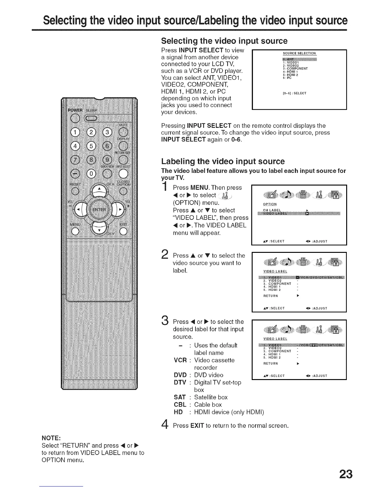 Selectingthe videoinputsource/Labelingthe videoinputsource