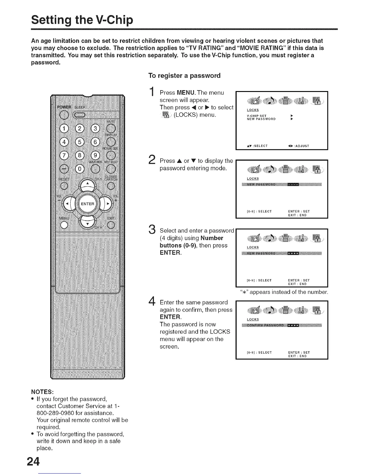 transmitted. You may set this restriction separately. To use the V-Chip function, you must register a
