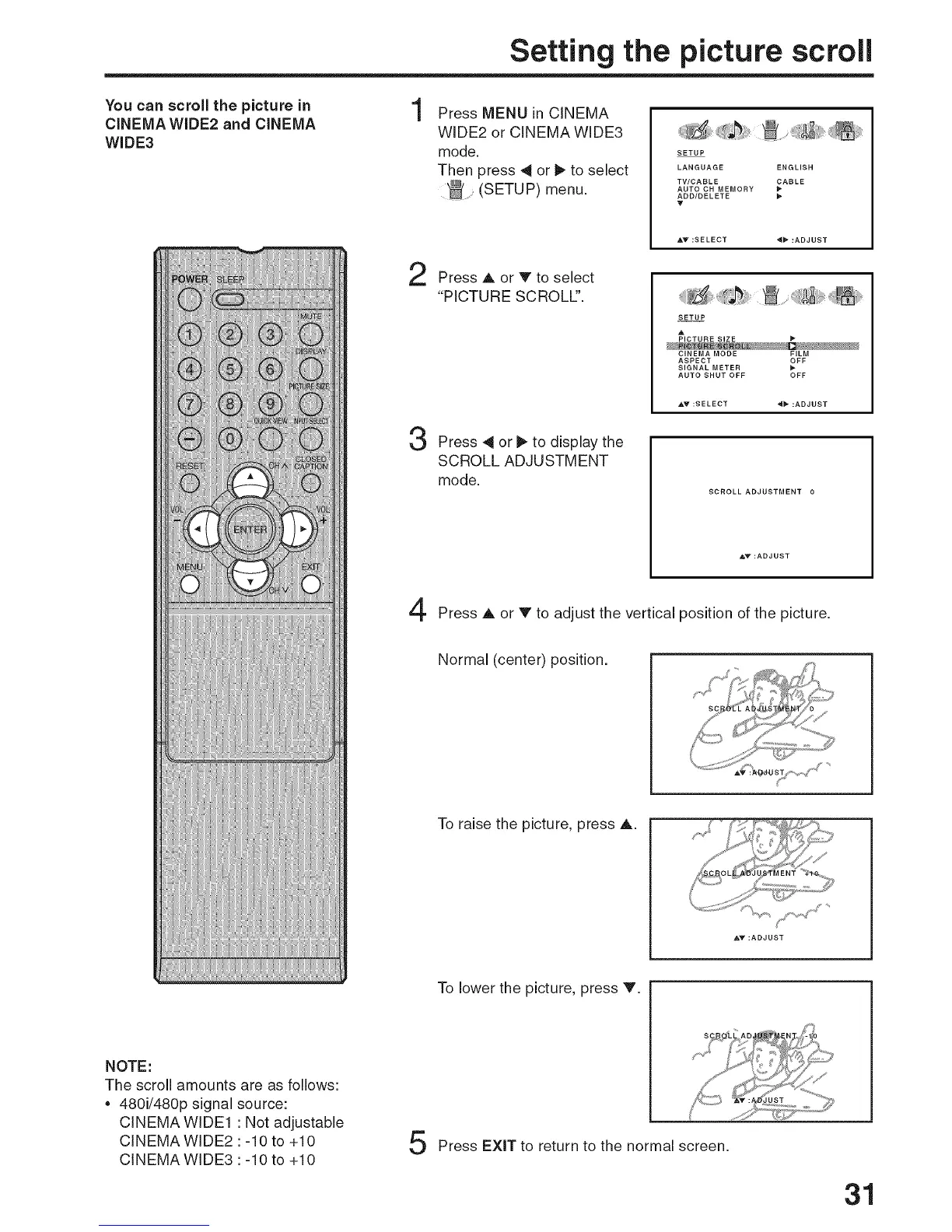 Press A or V to adjust the vertical position of the picture.