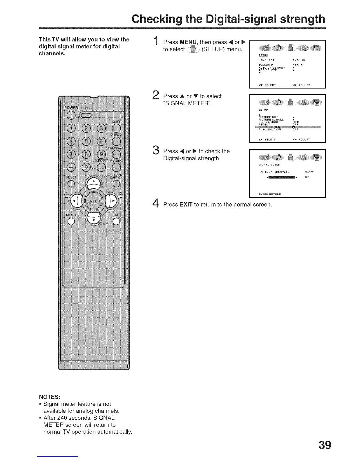 • Signal meter feature is not