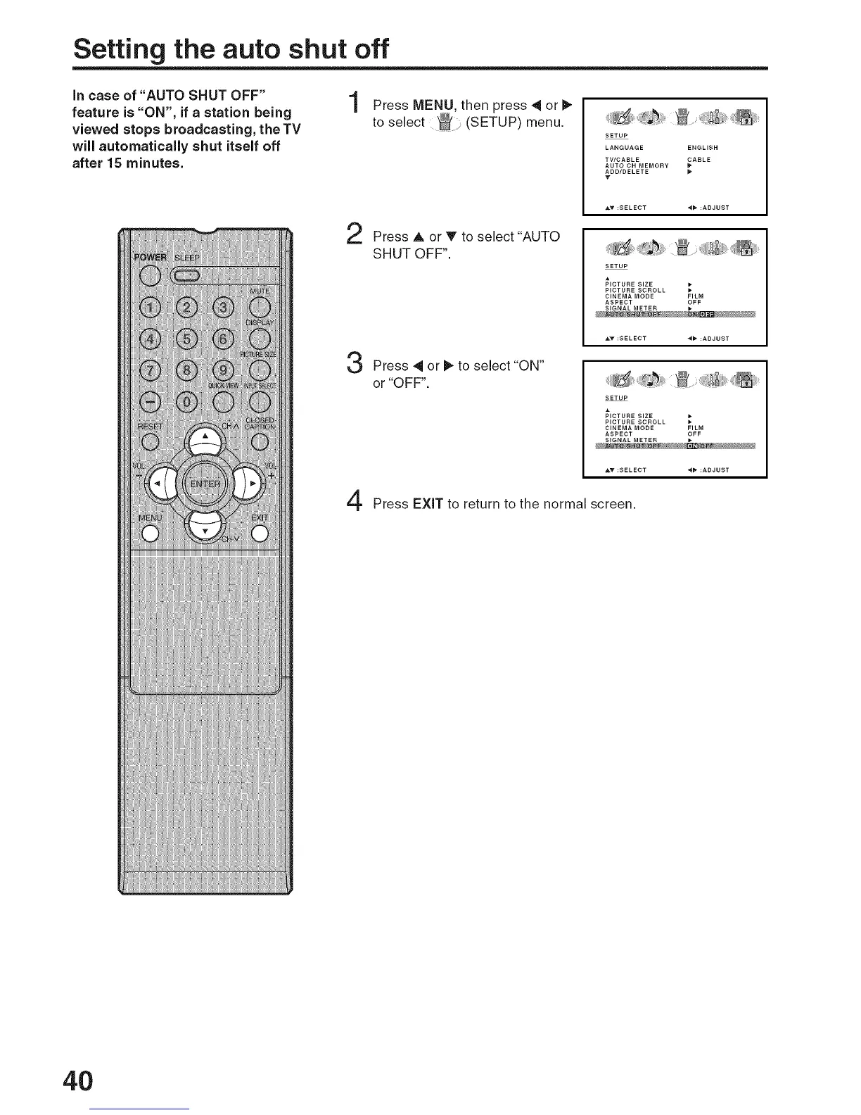 Setting the auto shut off