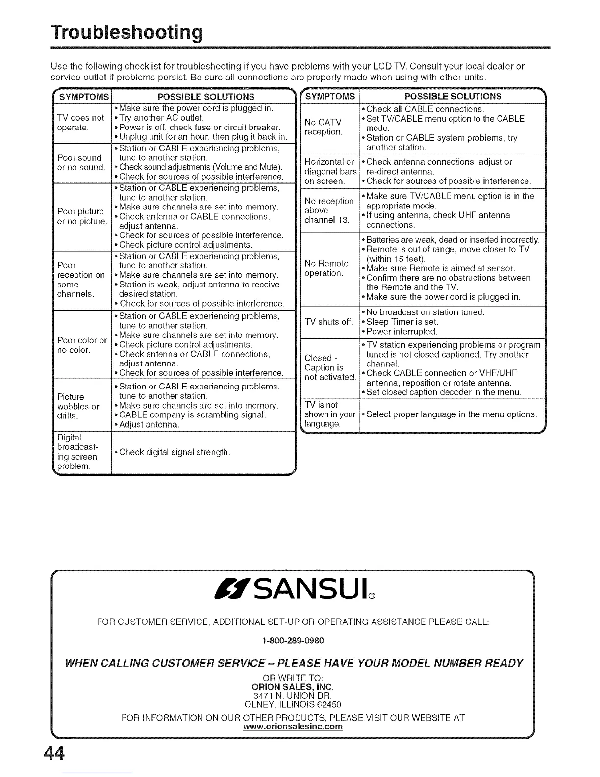 Use the following checklist for troubleshooting if you have problems with your LCD TV. Consult your local dealer or