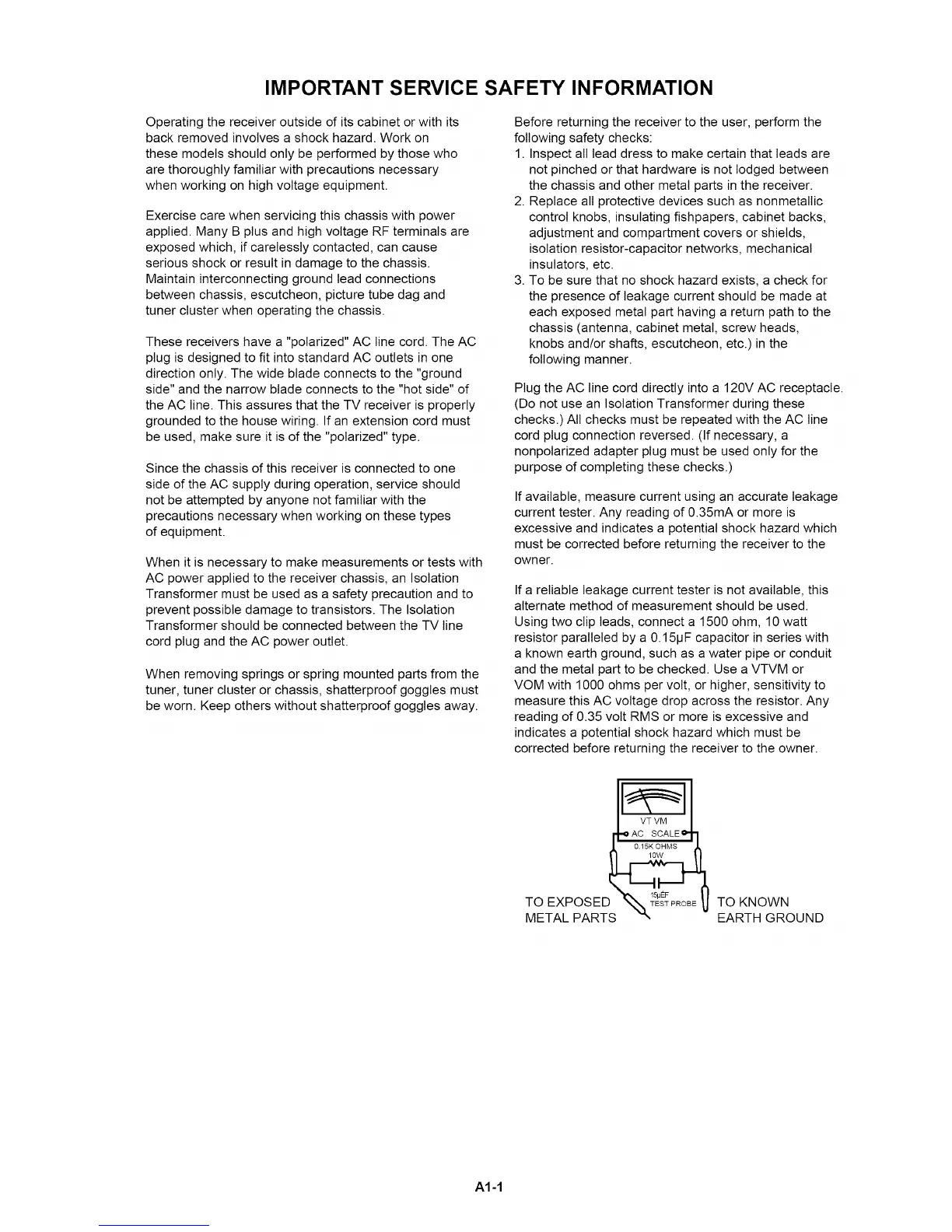 the AC line. This assures that the TV receiver is properly