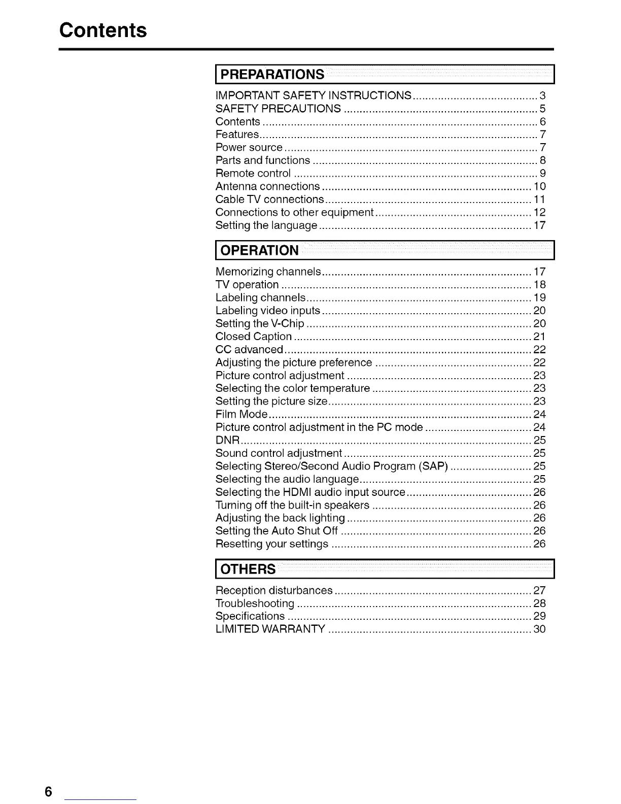 Selecting Stereo/Second Audio Program (SAP) .......................... 25