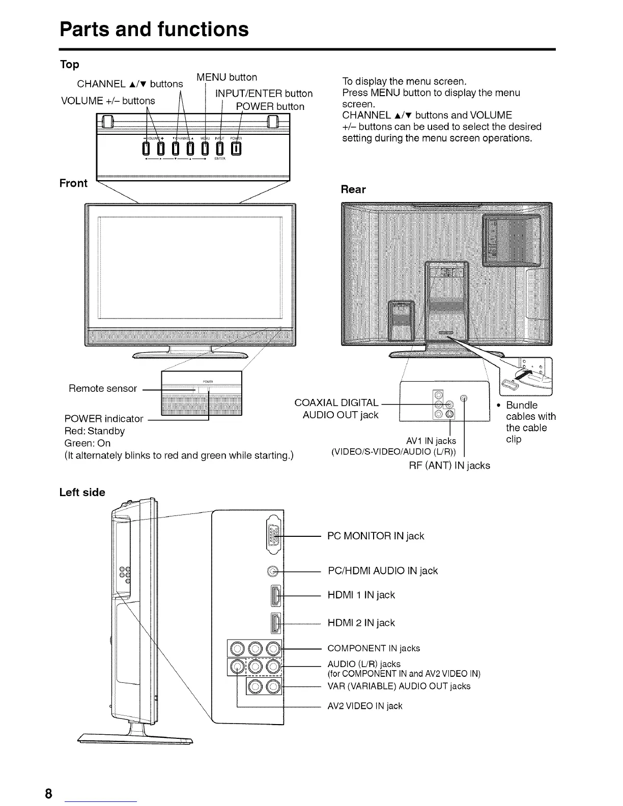 (for COMPONENT IN and AV2 VIDEO IN)