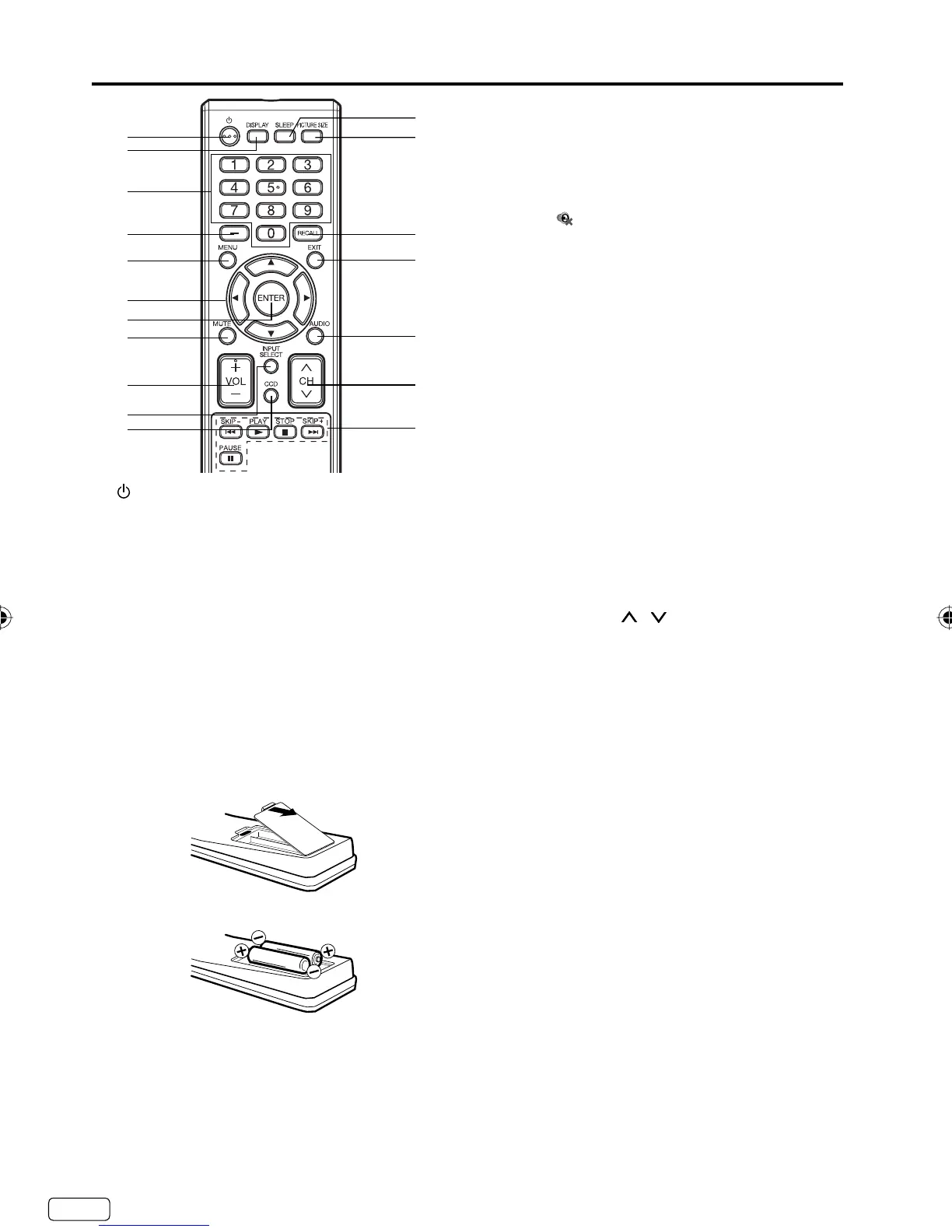 Before using the remote control, batteries must first be installed.