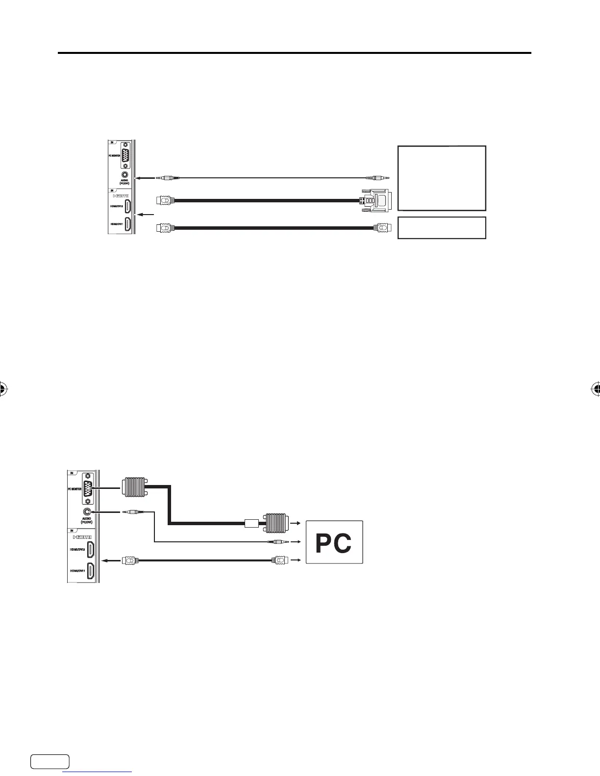 the AUDIO IN connector of the PC/DVI AUDIO IN jack of the TV. You can also connect the PC with HDMI cable.