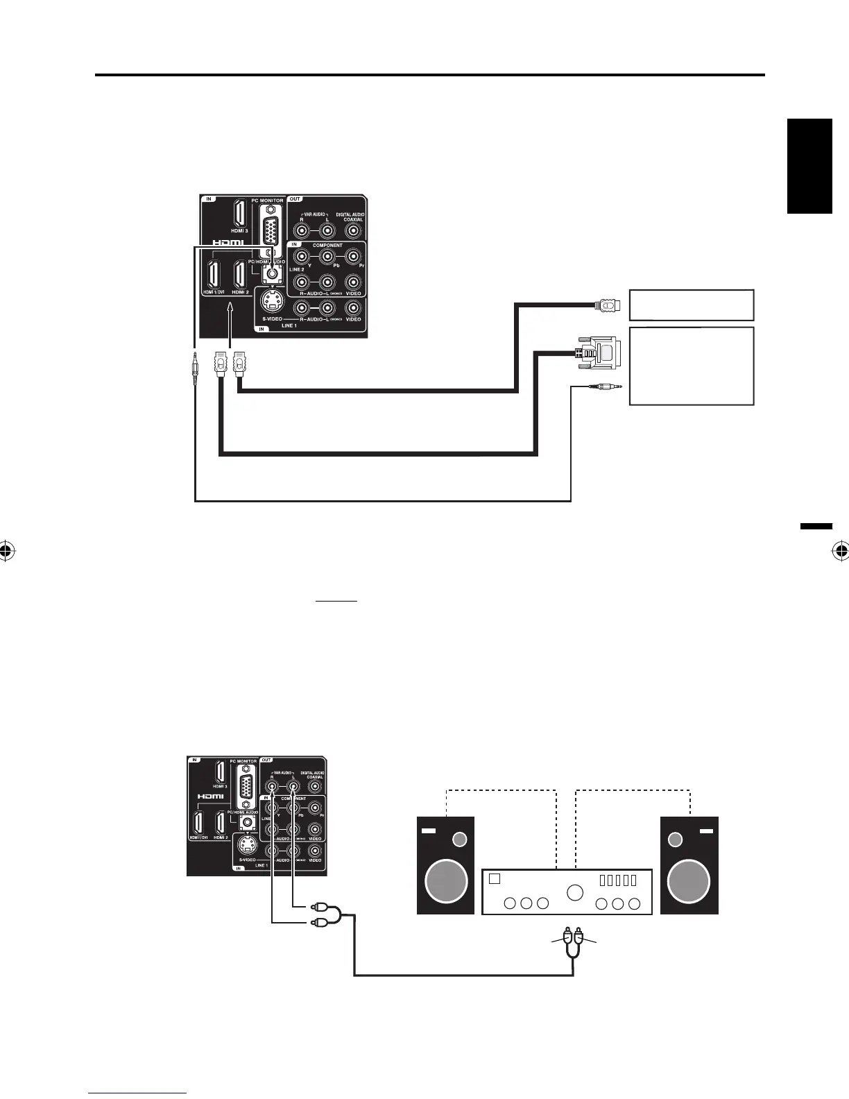 This connection allows you to use an audio amplifier and external speakers, and adjust the audio level using the