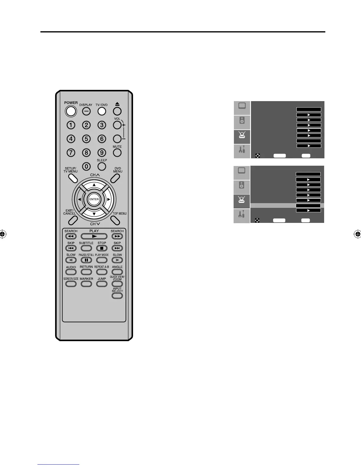 Press SETUP/TV MENU. The menu screen will appear.