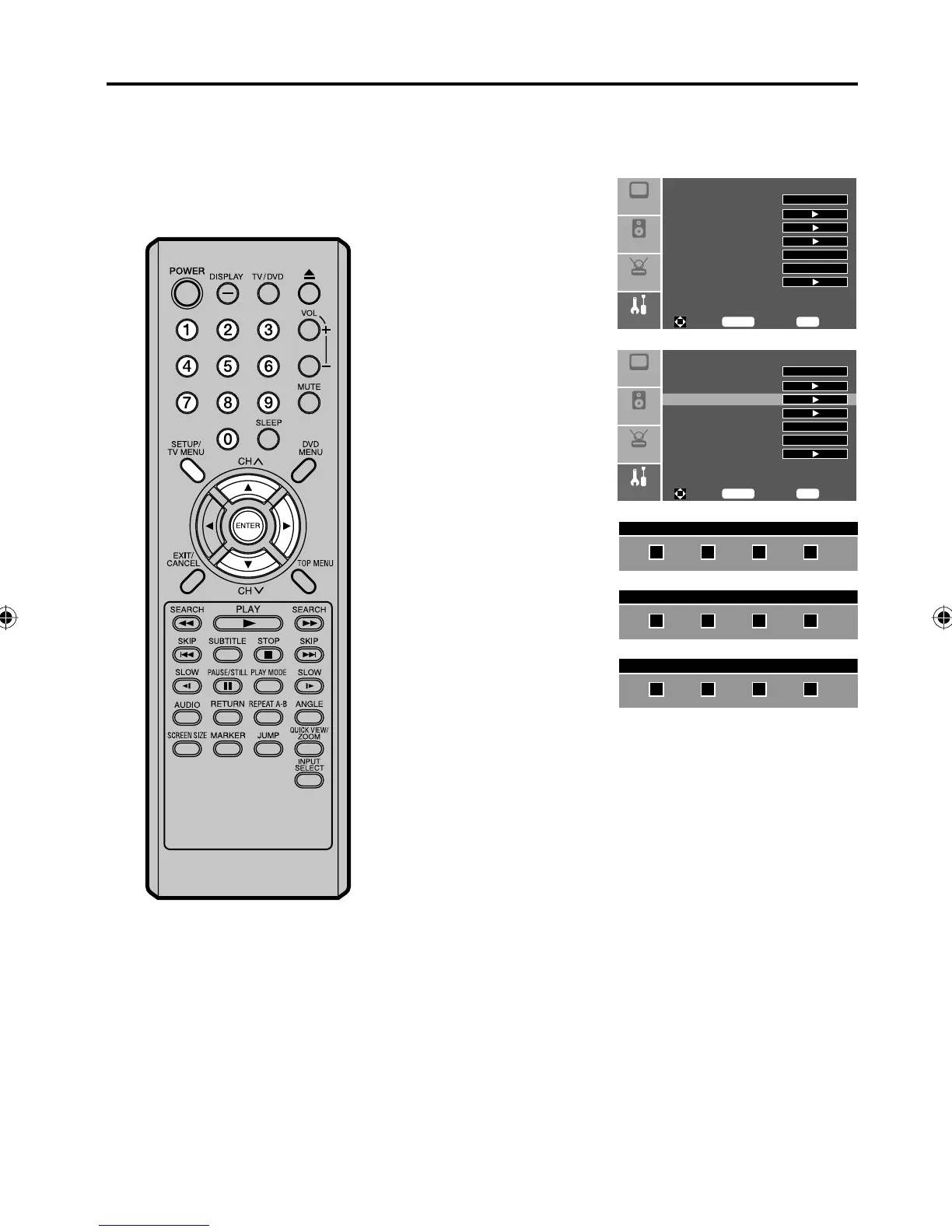 Press SETUP/TV MENU in the TV mode. The TV menu screen