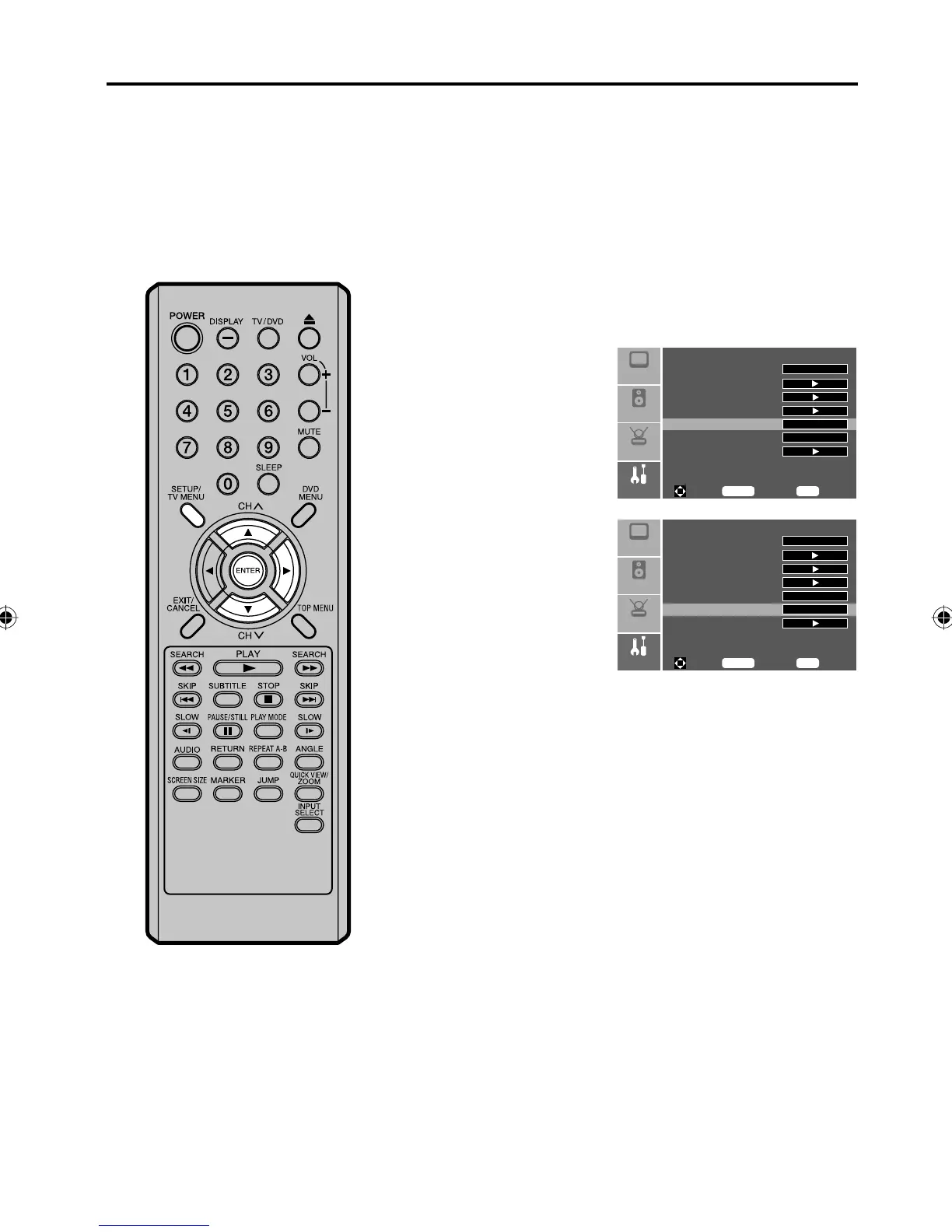 Press SETUP/TV MENU in the TV mode. Press ▲ or ▼ to