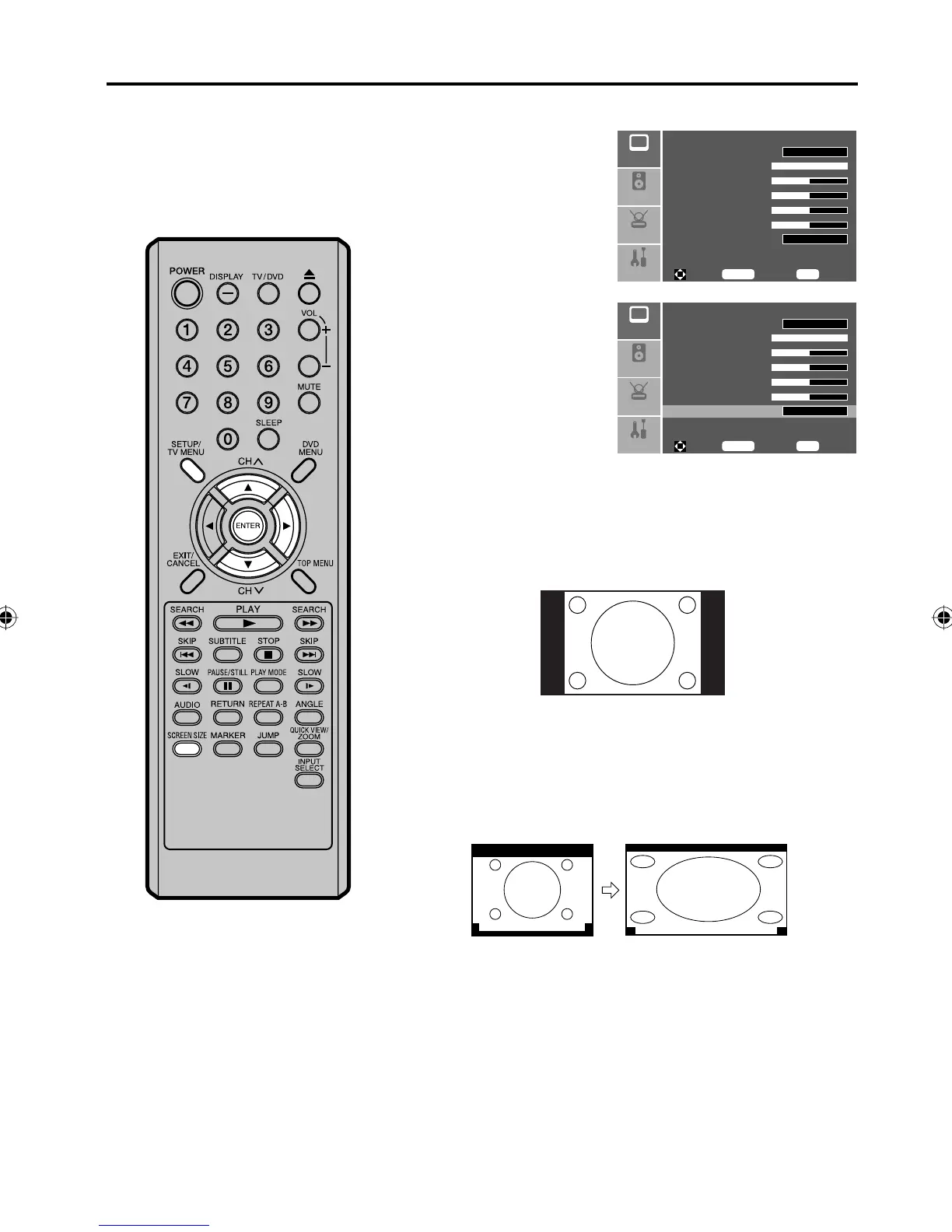 by pressing SCREEN SIZE on the