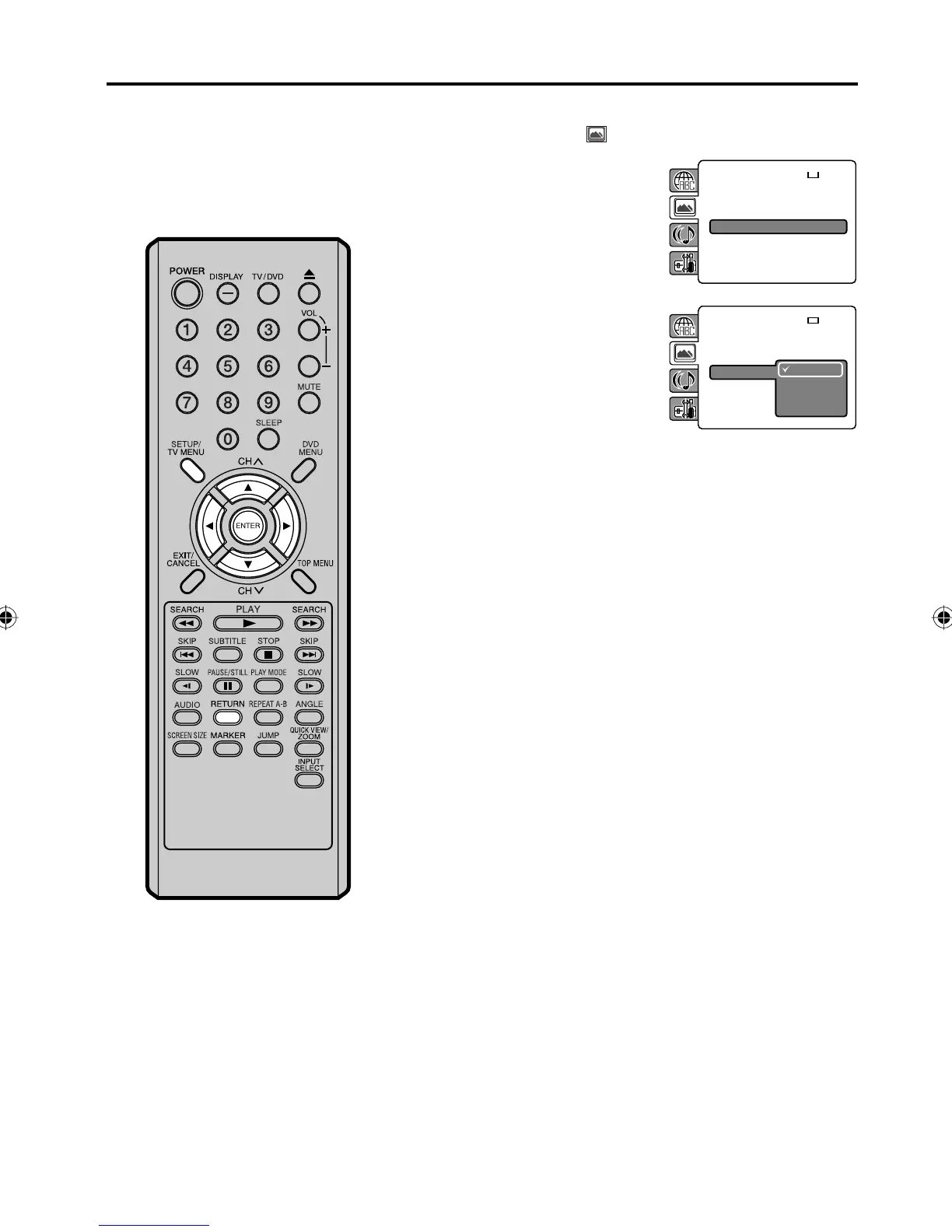 Press SETUP/TV MENU or RETURN to remove the menu