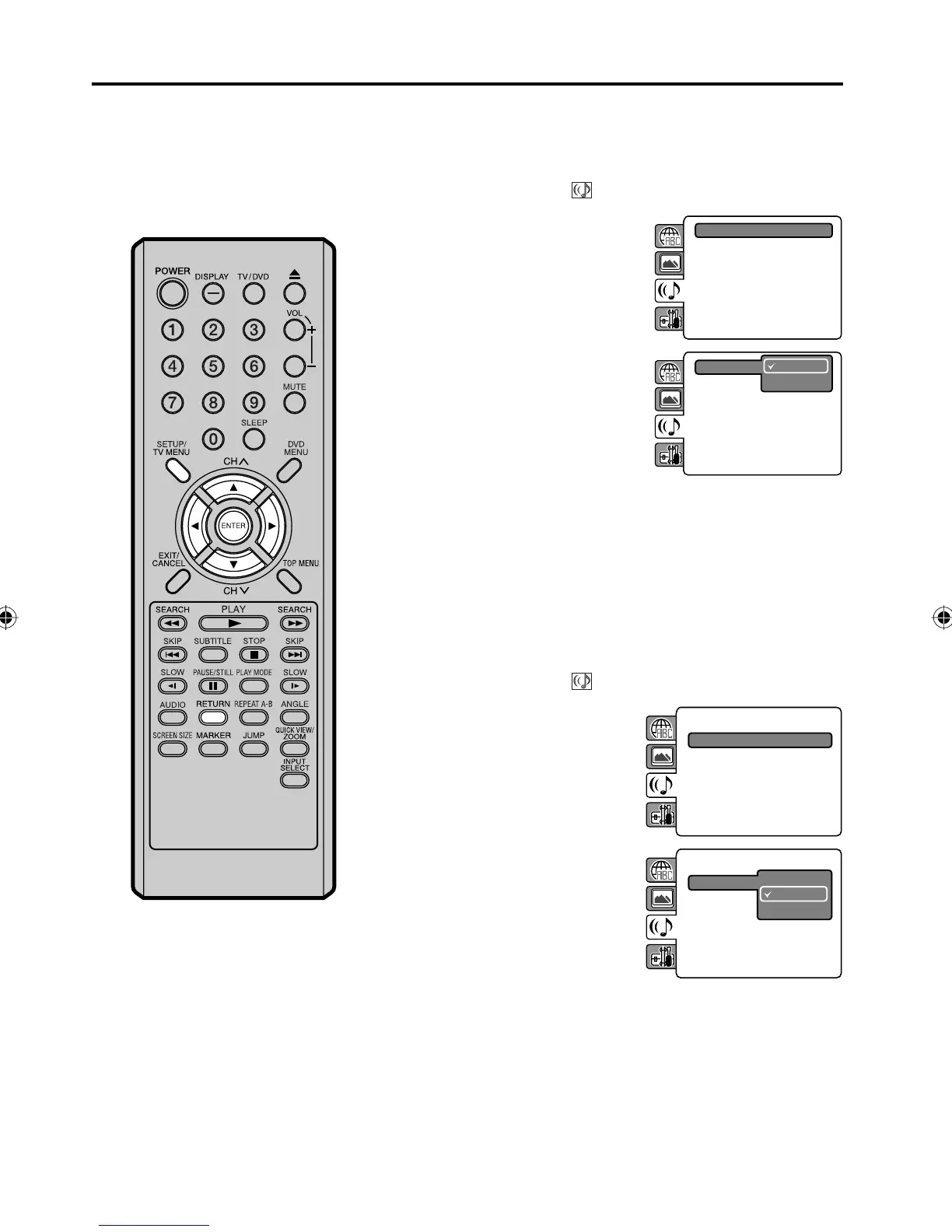 Press SETUP/TV MENU or RETURN to remove the menu