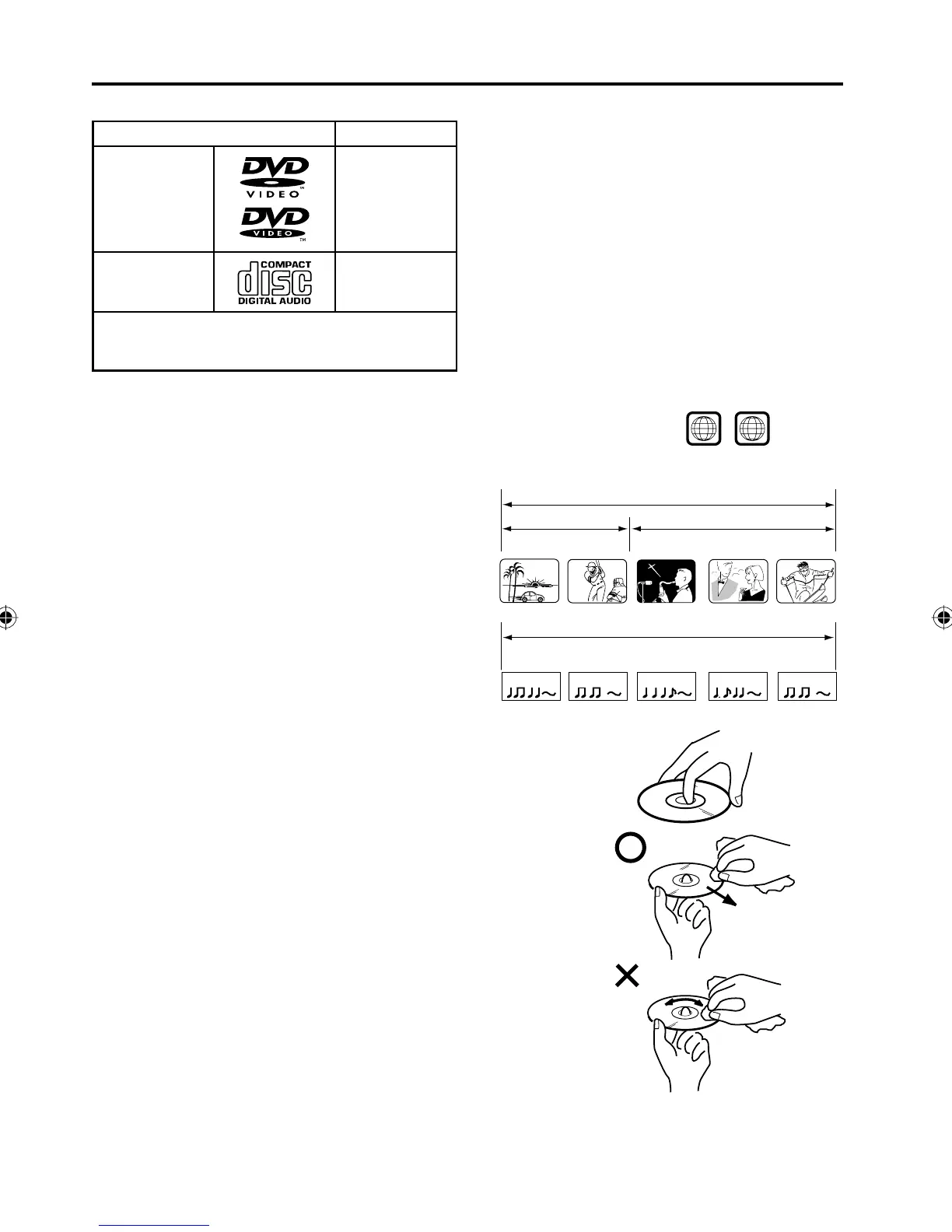 Region number “1” or “ALL” of DVD video discs can be used on this unit.