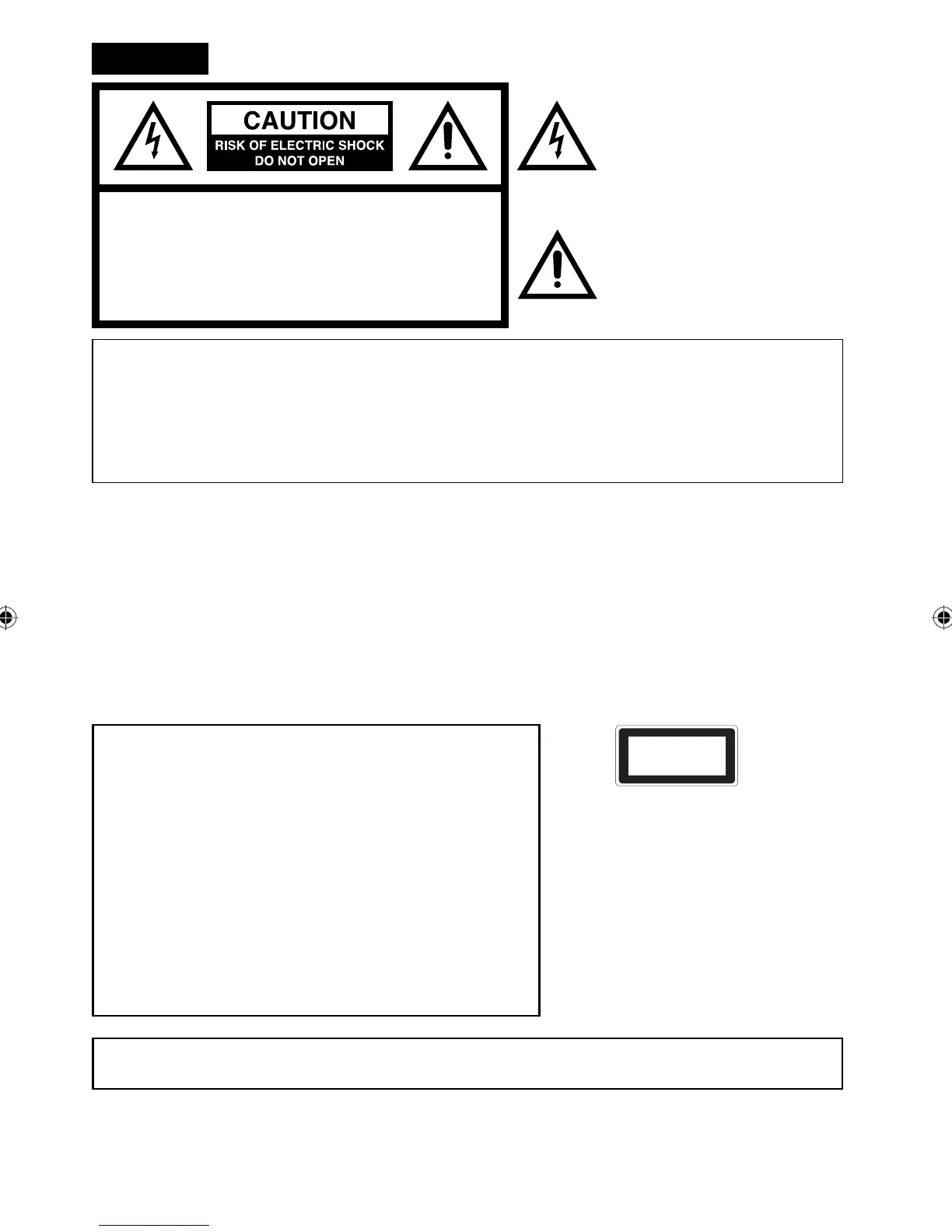 CAUTION: TO REDUCE THE RISK OF ELECTRIC