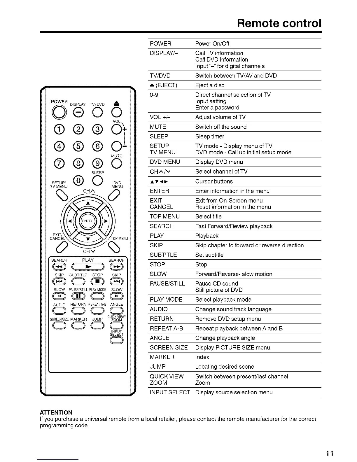 If you purchase a universal remote from a local retailer, please contact the remote manufacturer for the correct