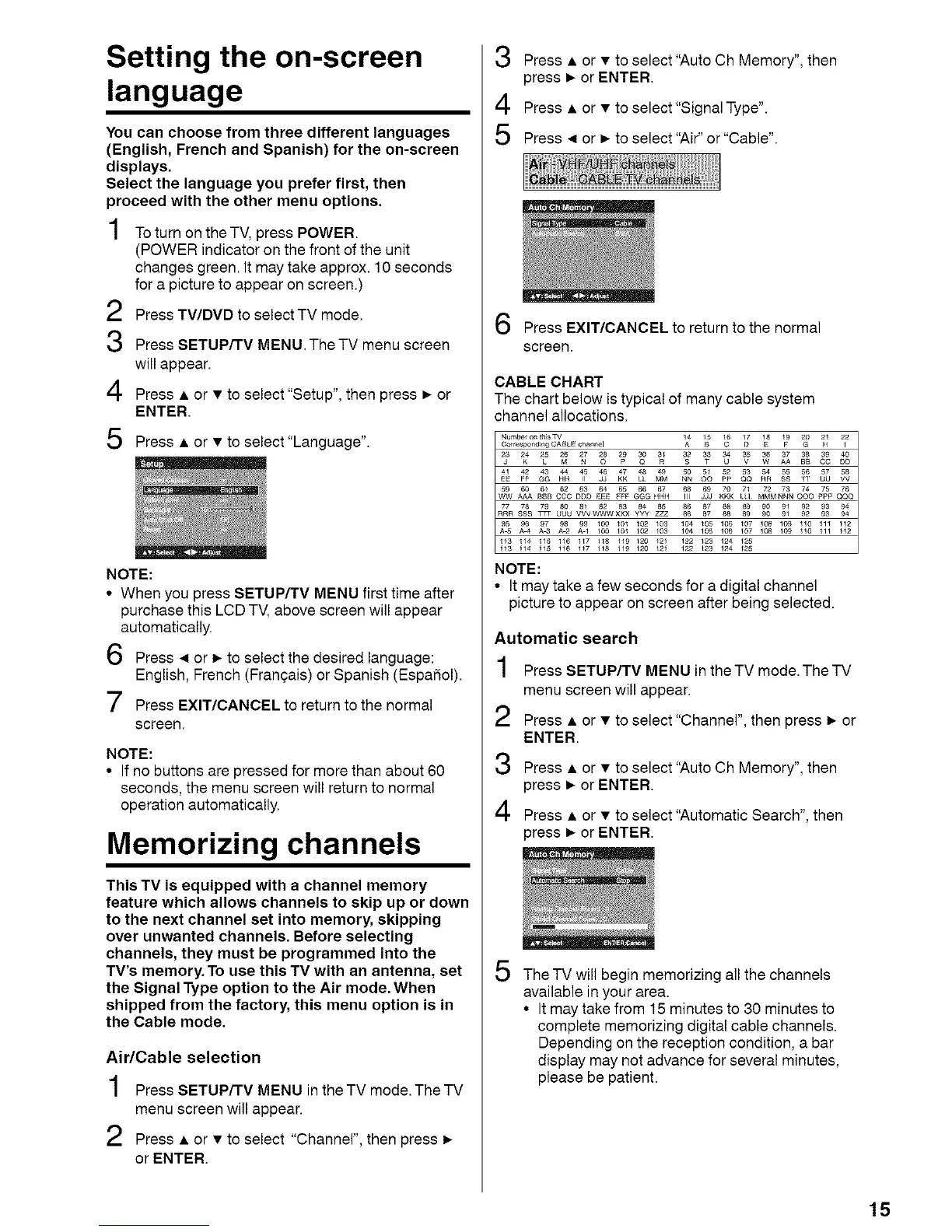 1 Press SETUP/TV MENU in the TV mode.The TV