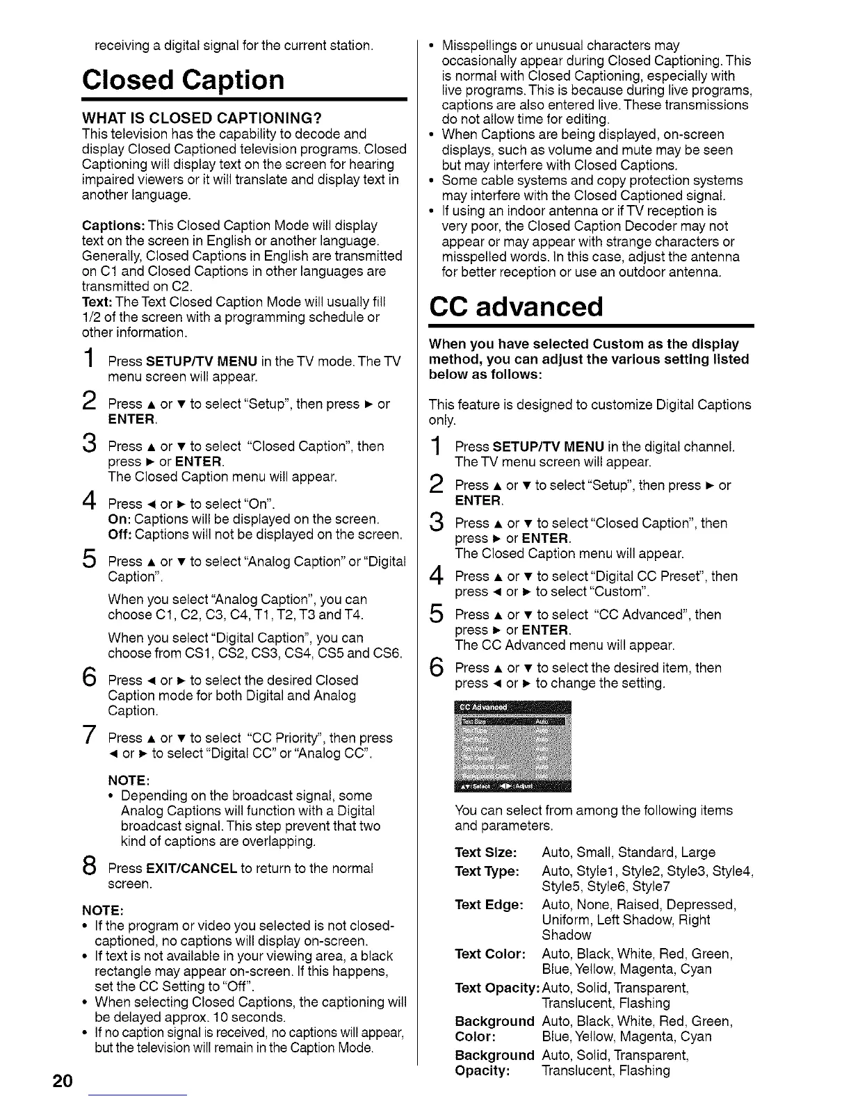 1 Press SETUP/TV MENU in the TV mode.The TV