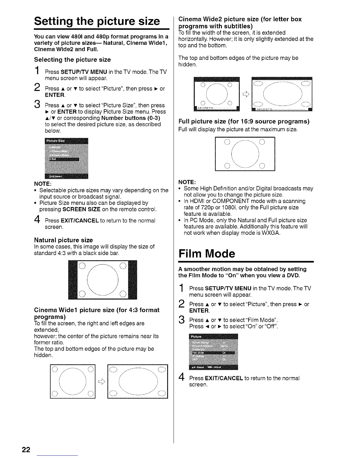 variety of picture sizes-- Natural, Cinema Wide1,