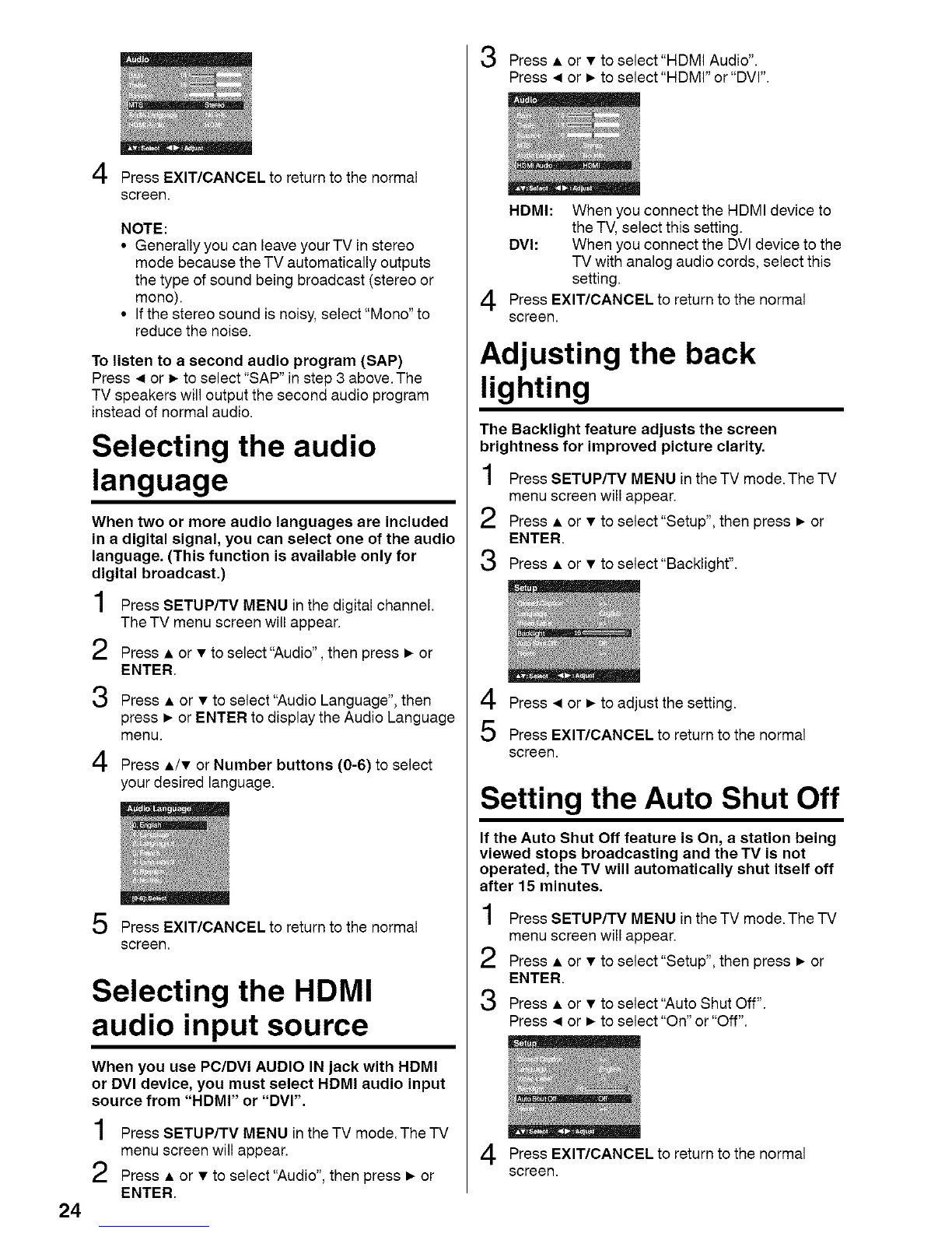Press • or • to select "Audio", then press • or
