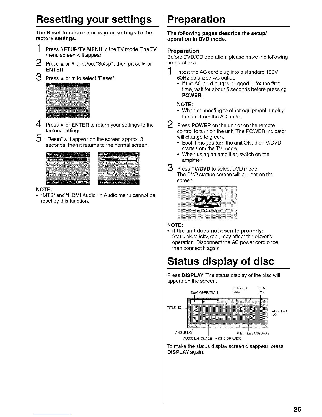 • Each time you turn the unit ON, the TV/DVD