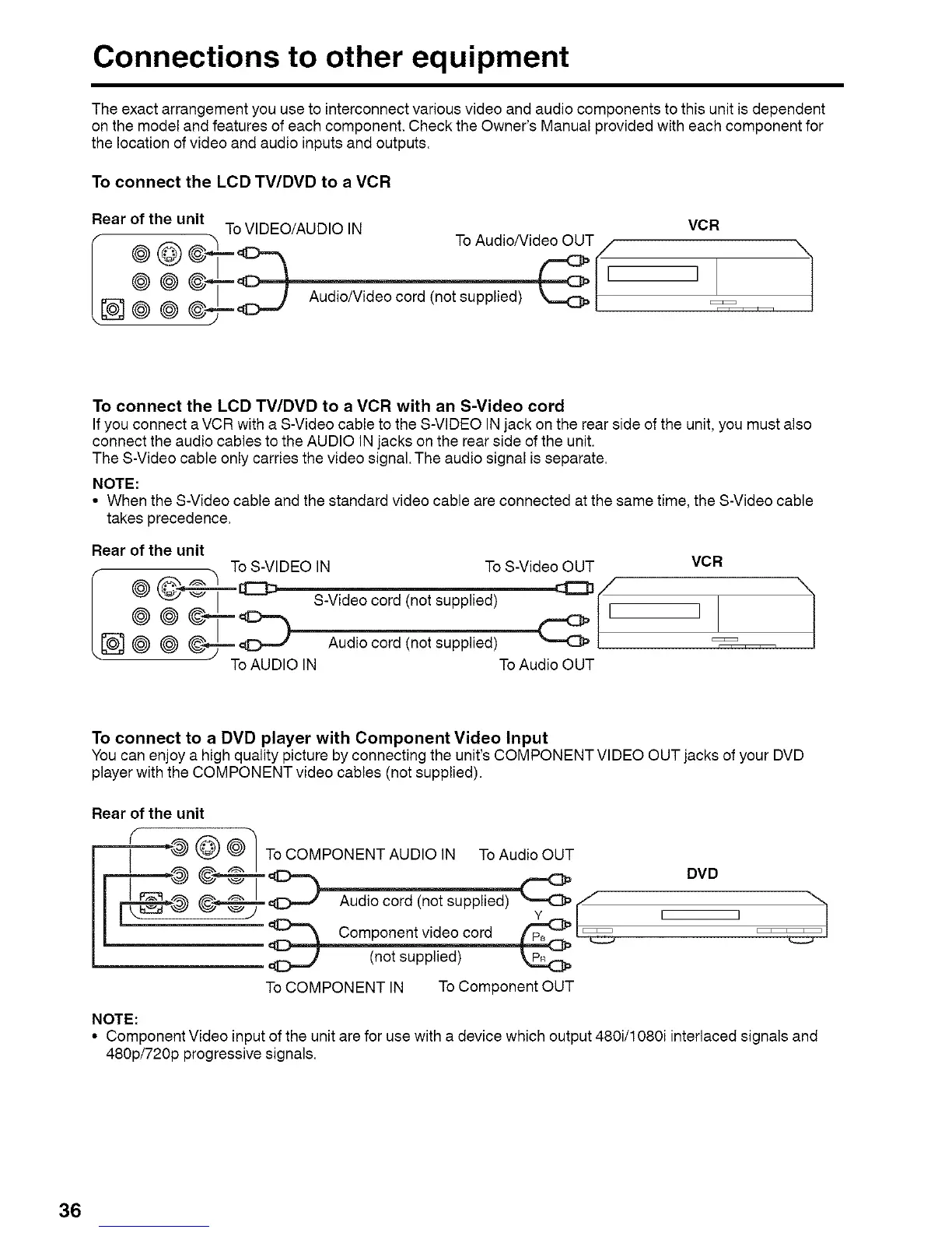 • Component Video input of the unit are for use with a device which output 480i/1080i interlaced signals and