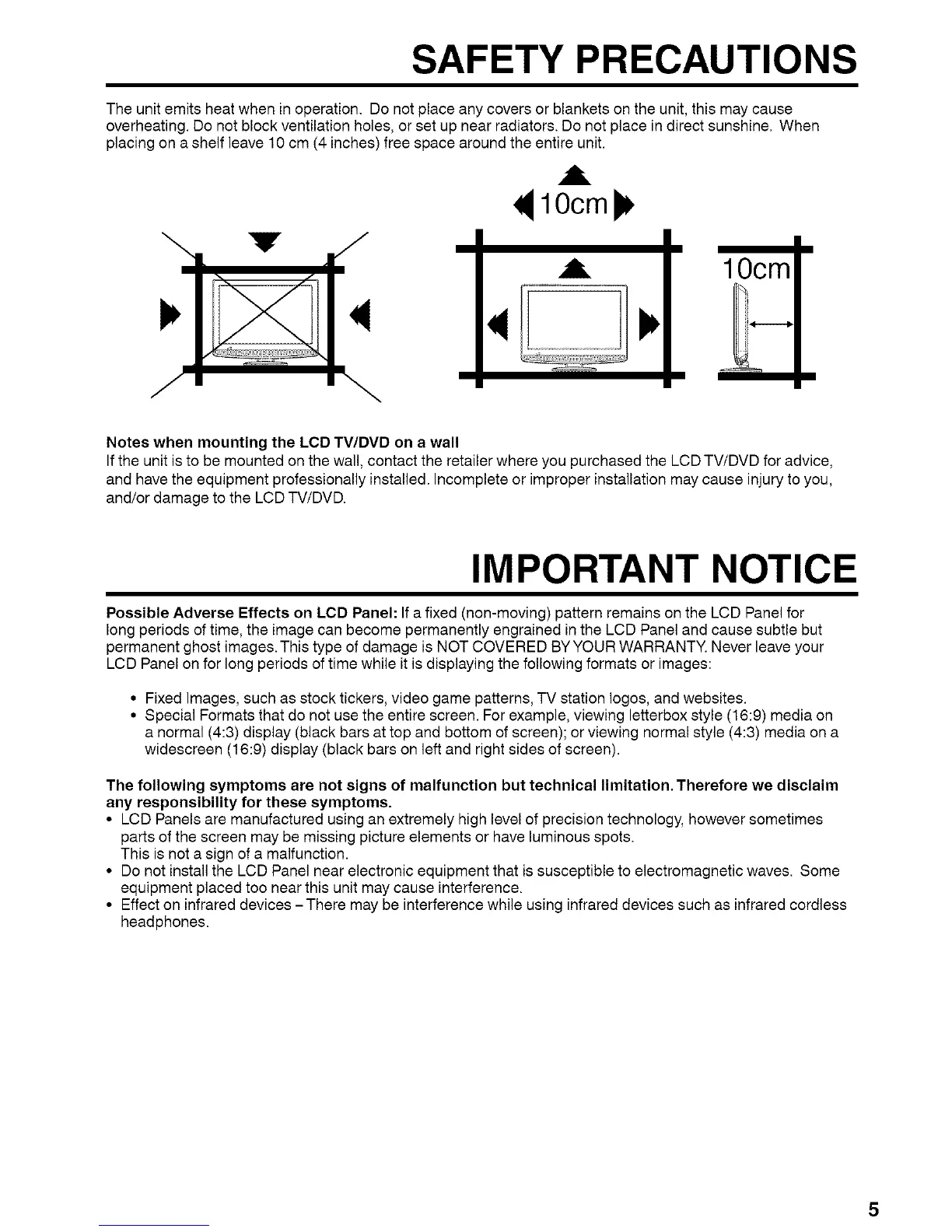 If the unit is to be mounted on the wall, contact the retailer where you purchased the LCD TV/DVD for advice,