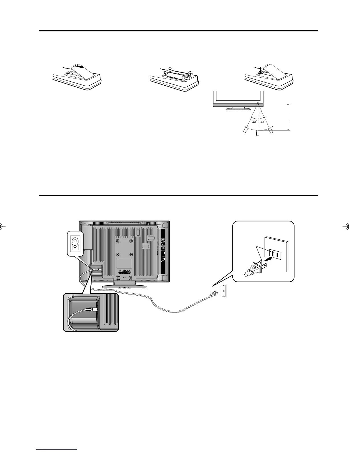 • Please make sure to insert the cord securely at both the LCD TV/DVD and the wall outlet.