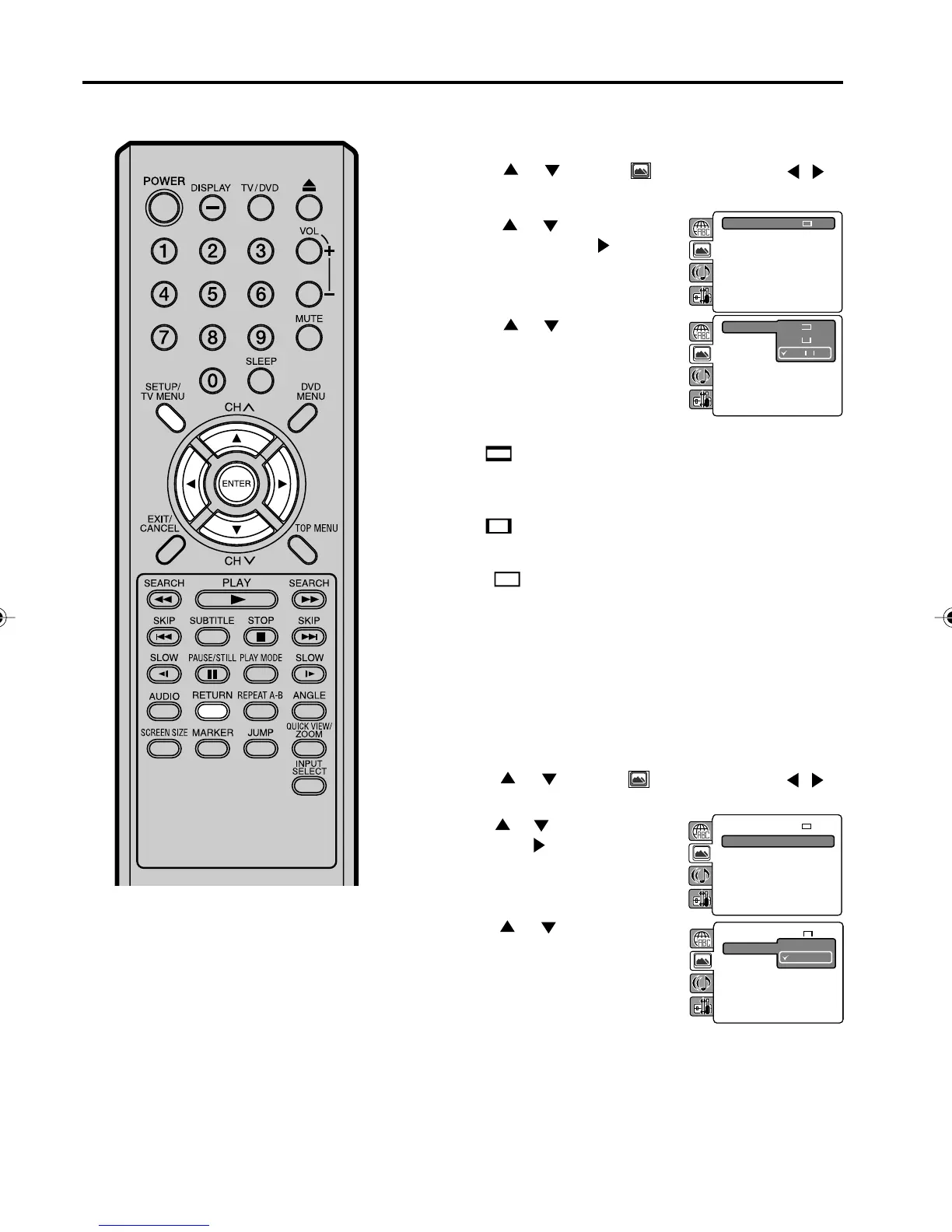 Press SETUP/TV MENU in the stop mode or No Disc.
