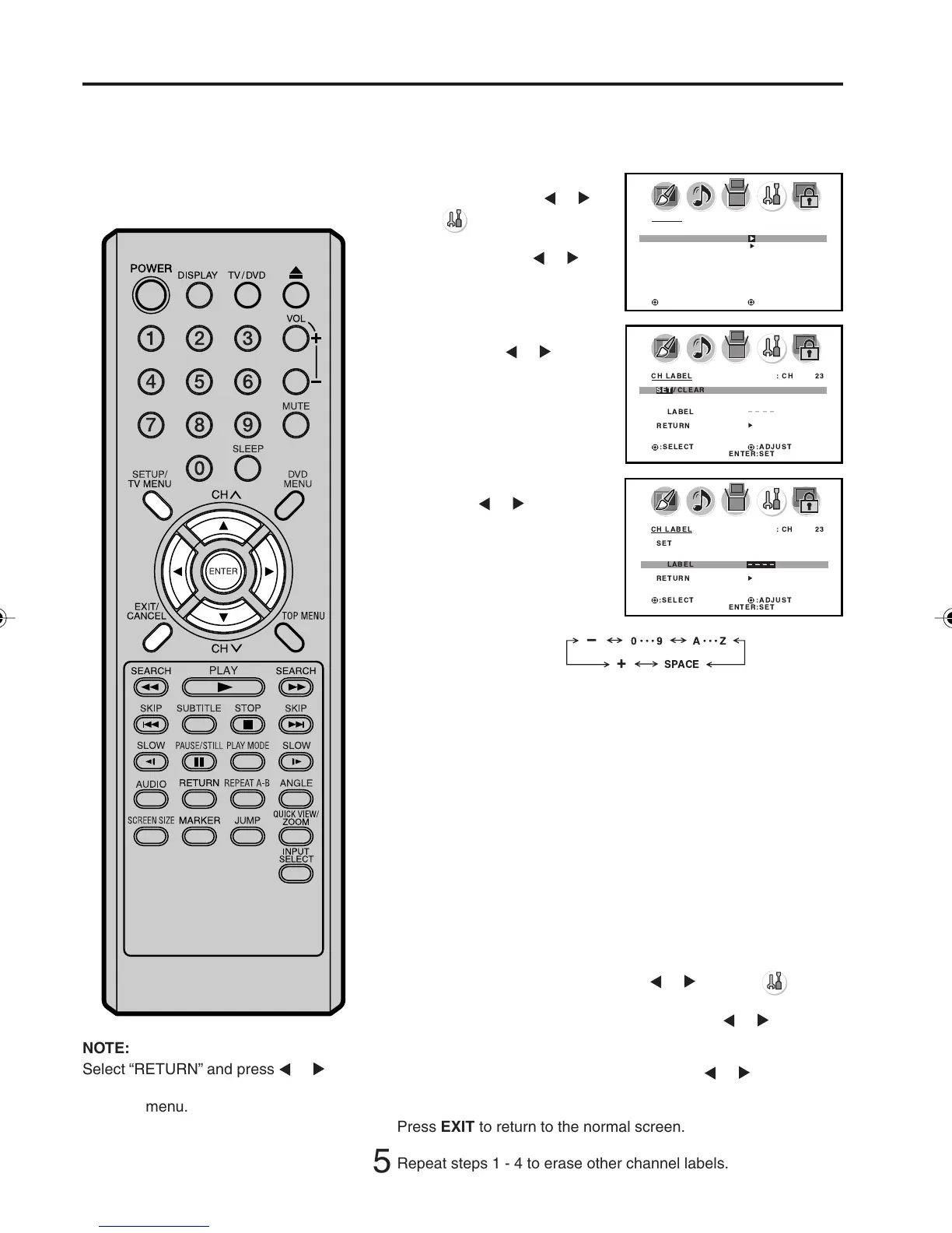 to return from CH LABEL menu to