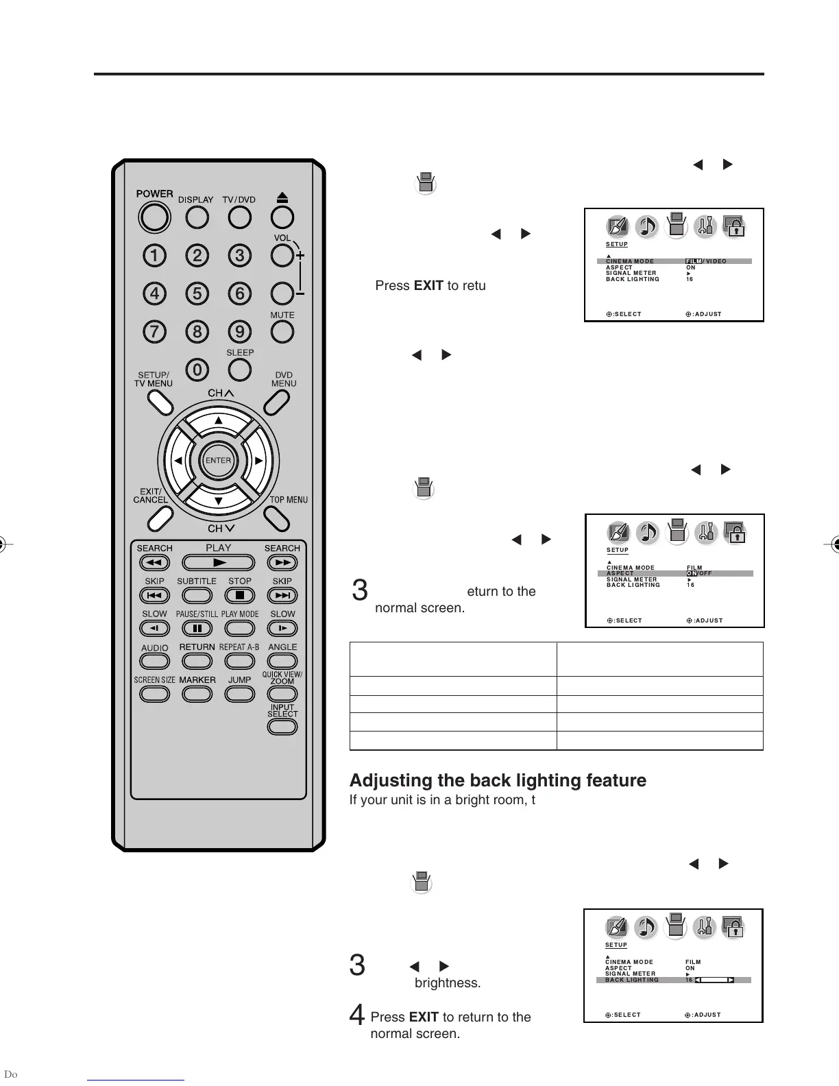 see. You can use the BACK LIGHTING feature to adjust the screen