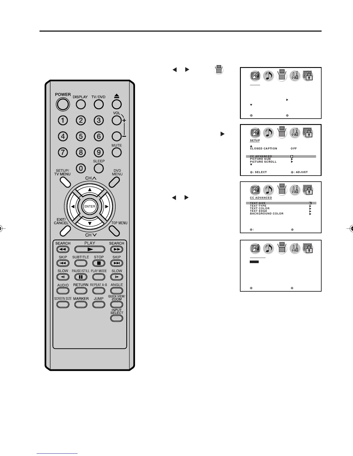 Press ▲ or ▼ to select “CC