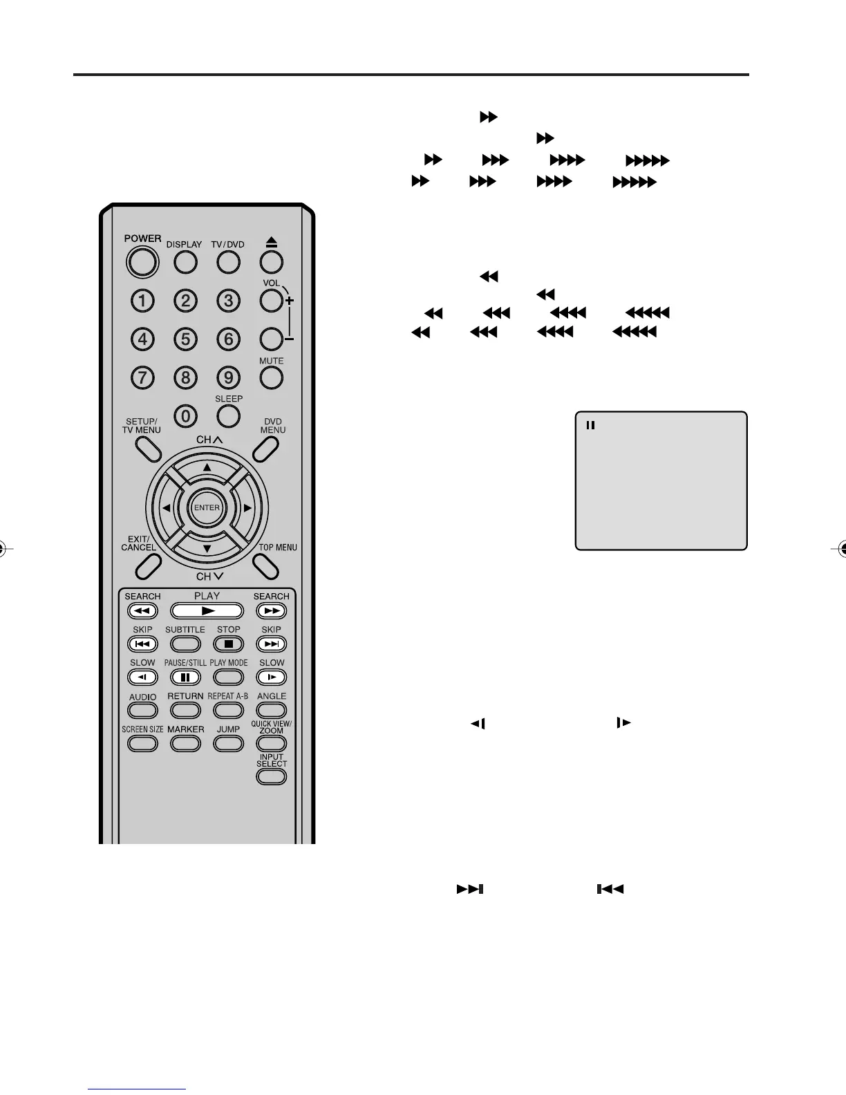 • To resume the still playback, press PAUSE/STILL.