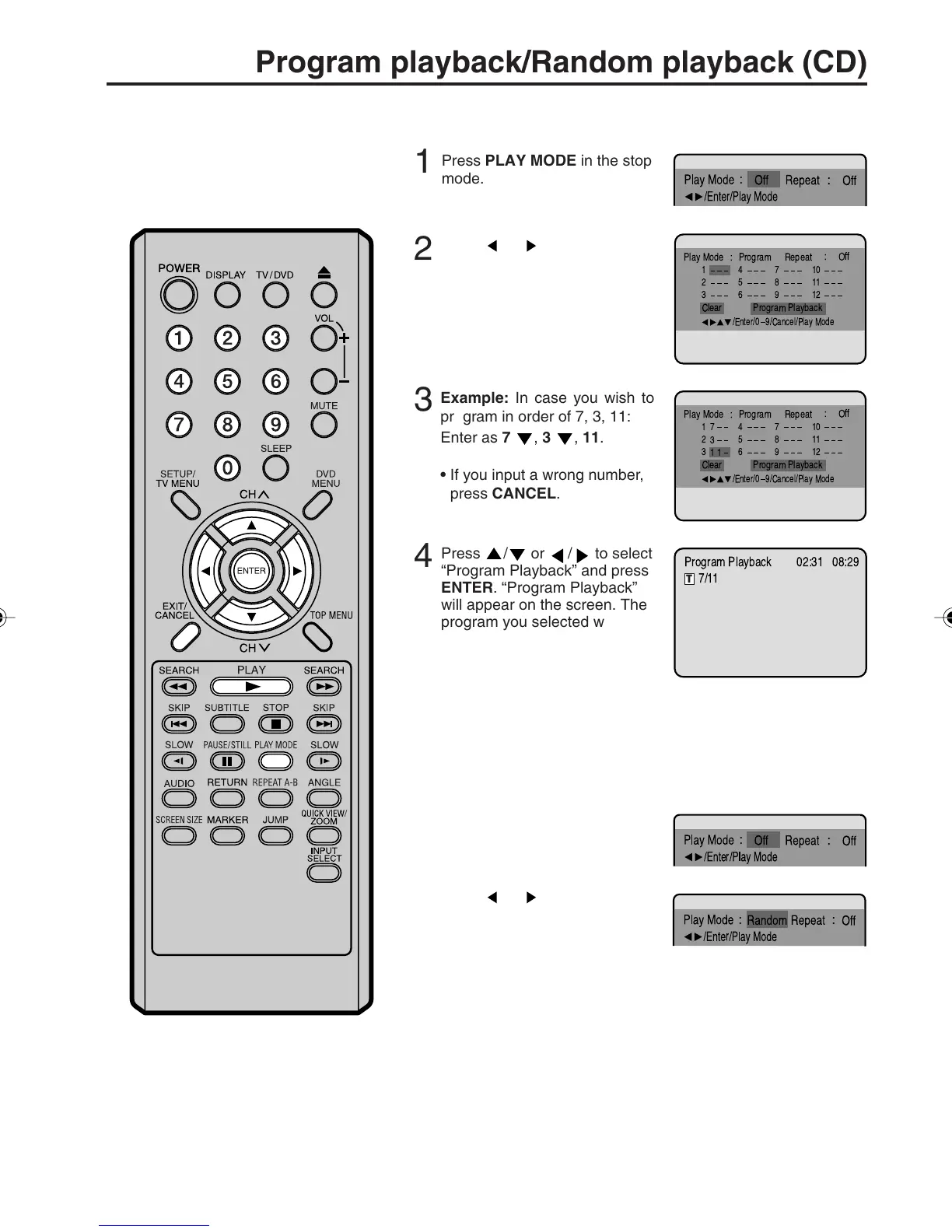 Program playback/Random playback (CD)