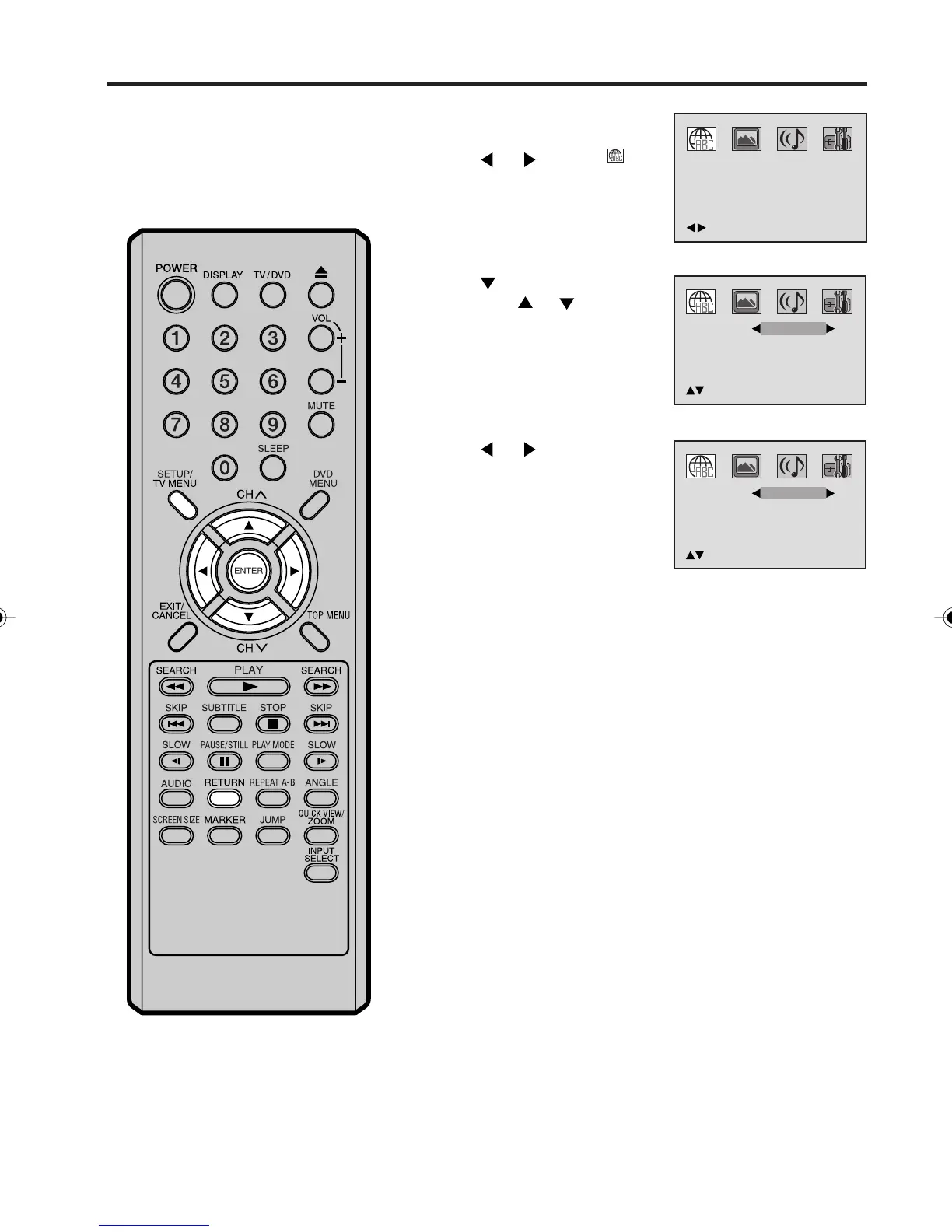 Press SETUP/TV MENU or RETURN to remove the Menu