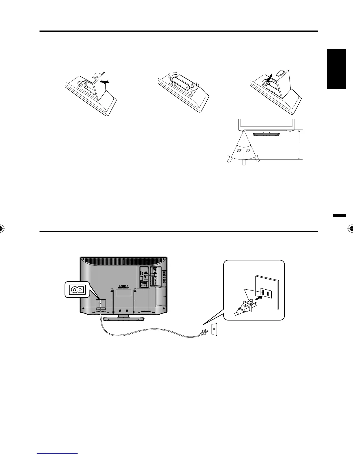 Operate the remote control within a 30° angle on either side of