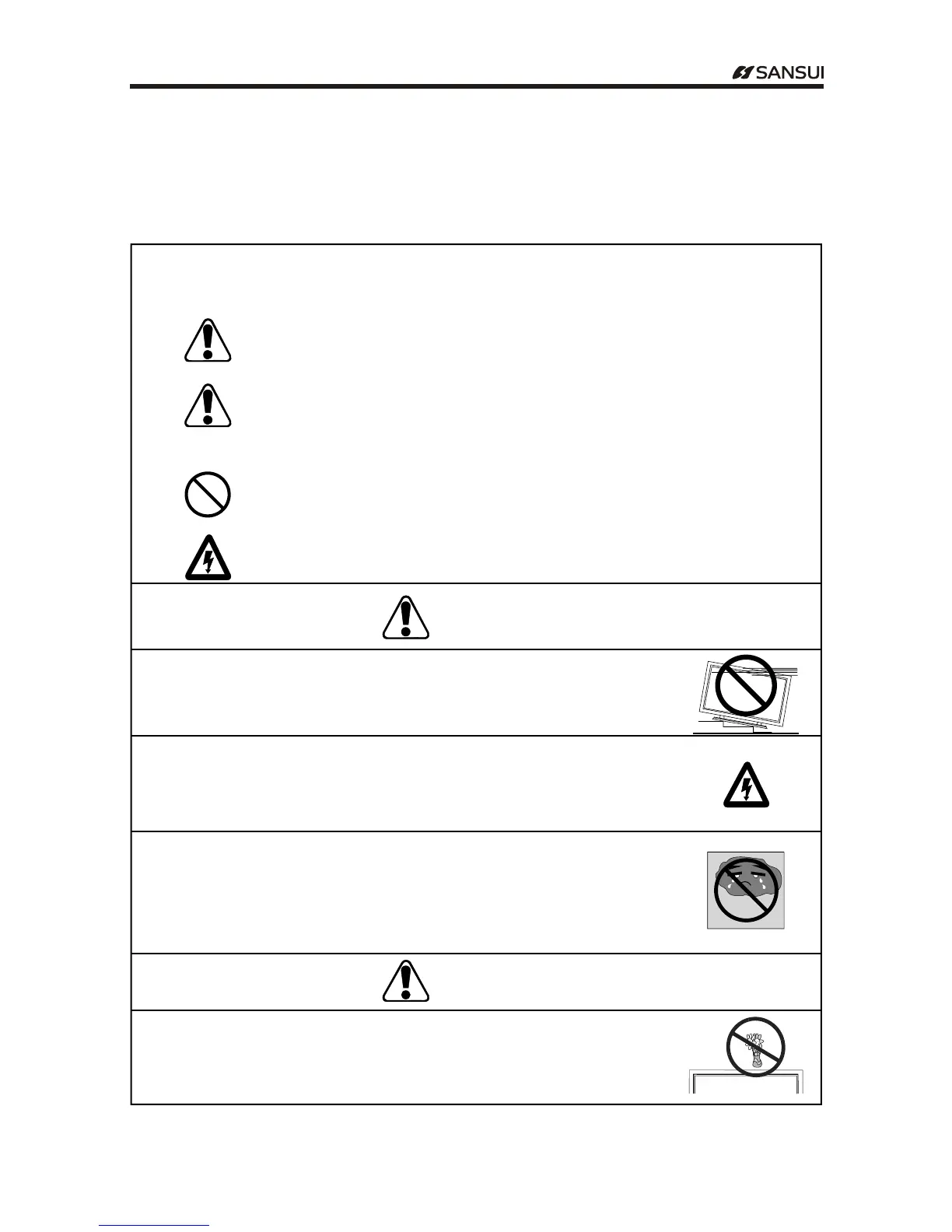 Never place TV on an unstable cart, stand, or table. The TV may