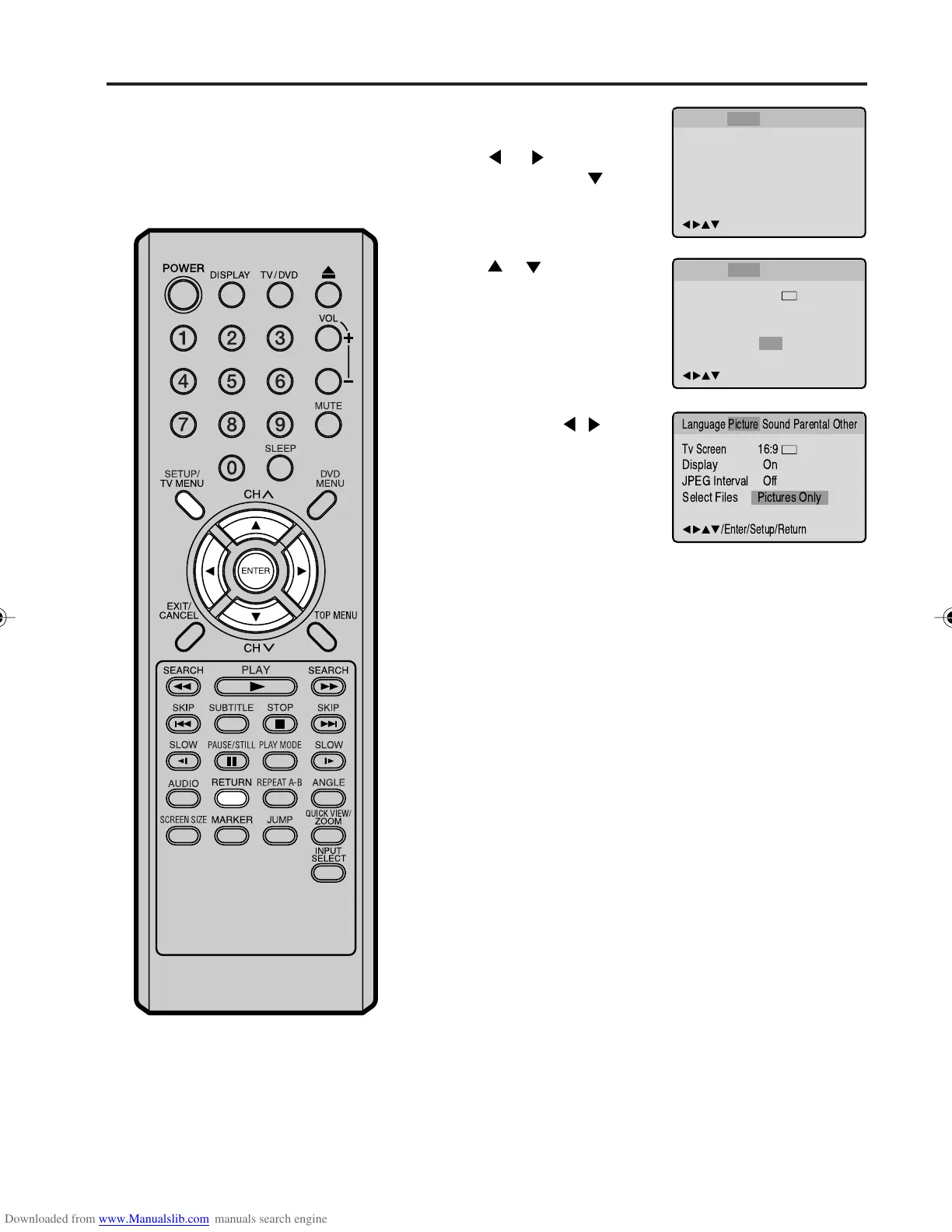 Press SETUP/TV MENU or RETURN to remove the Menu