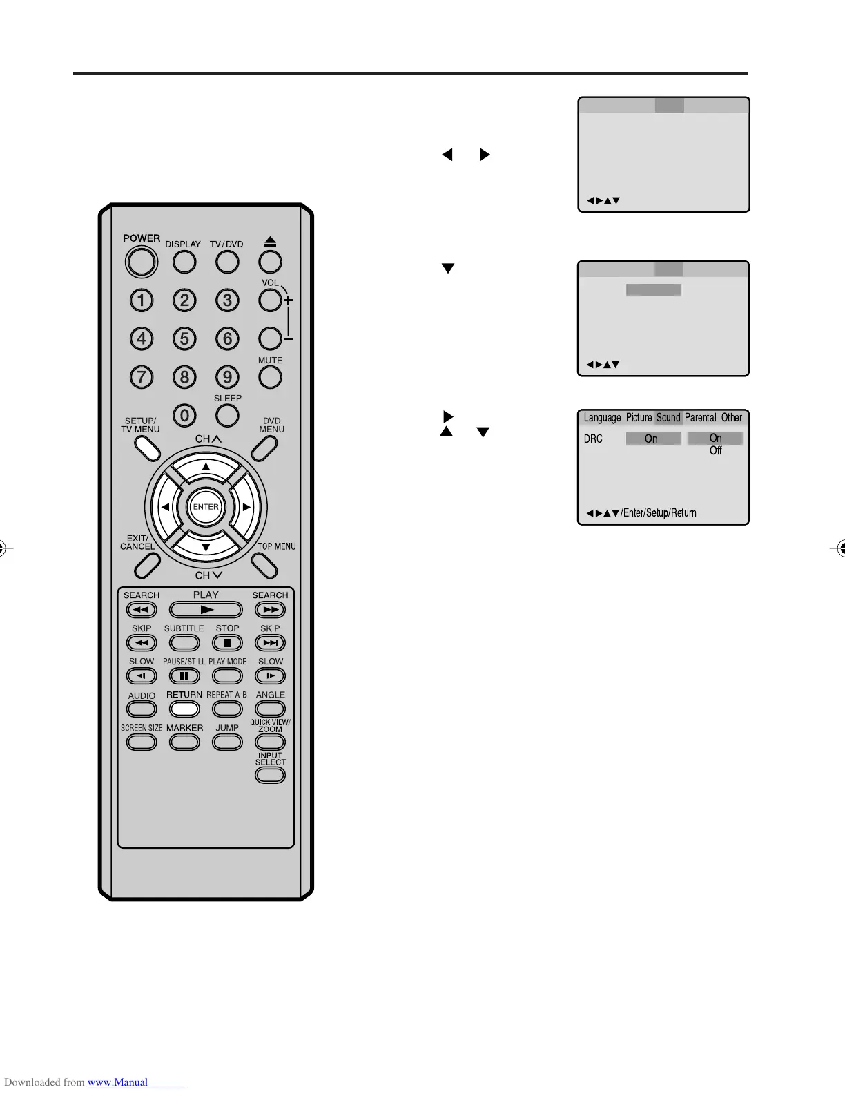 Press SETUP/TV MENU or RETURN to remove the Menu