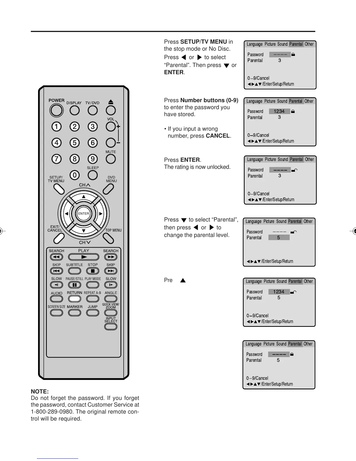 the password, contact Customer Service at