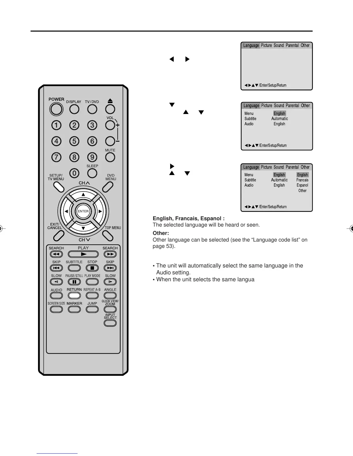 Press SETUP/TV MENU or RETURN to remove the Menu