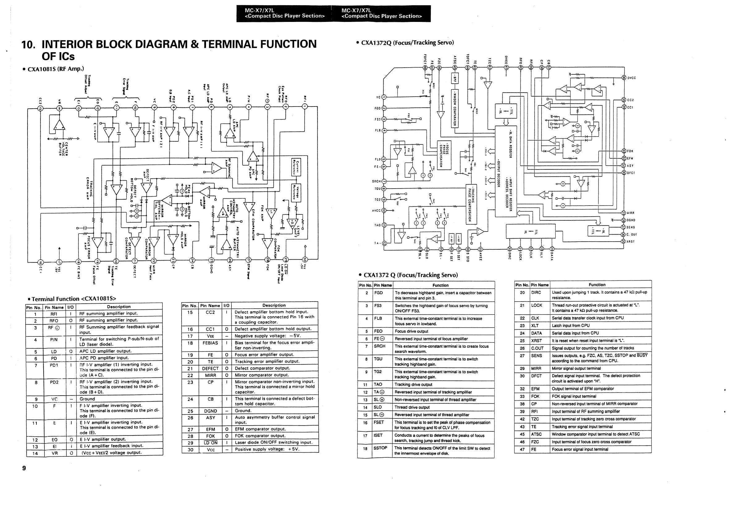 Sansui MC-X7 - IC Functions and Block Diagrams; CXA1081 S (RF Amp.) Function and Diagram; CXA1372 Q (Focus;Tracking Servo) Function and Diagram