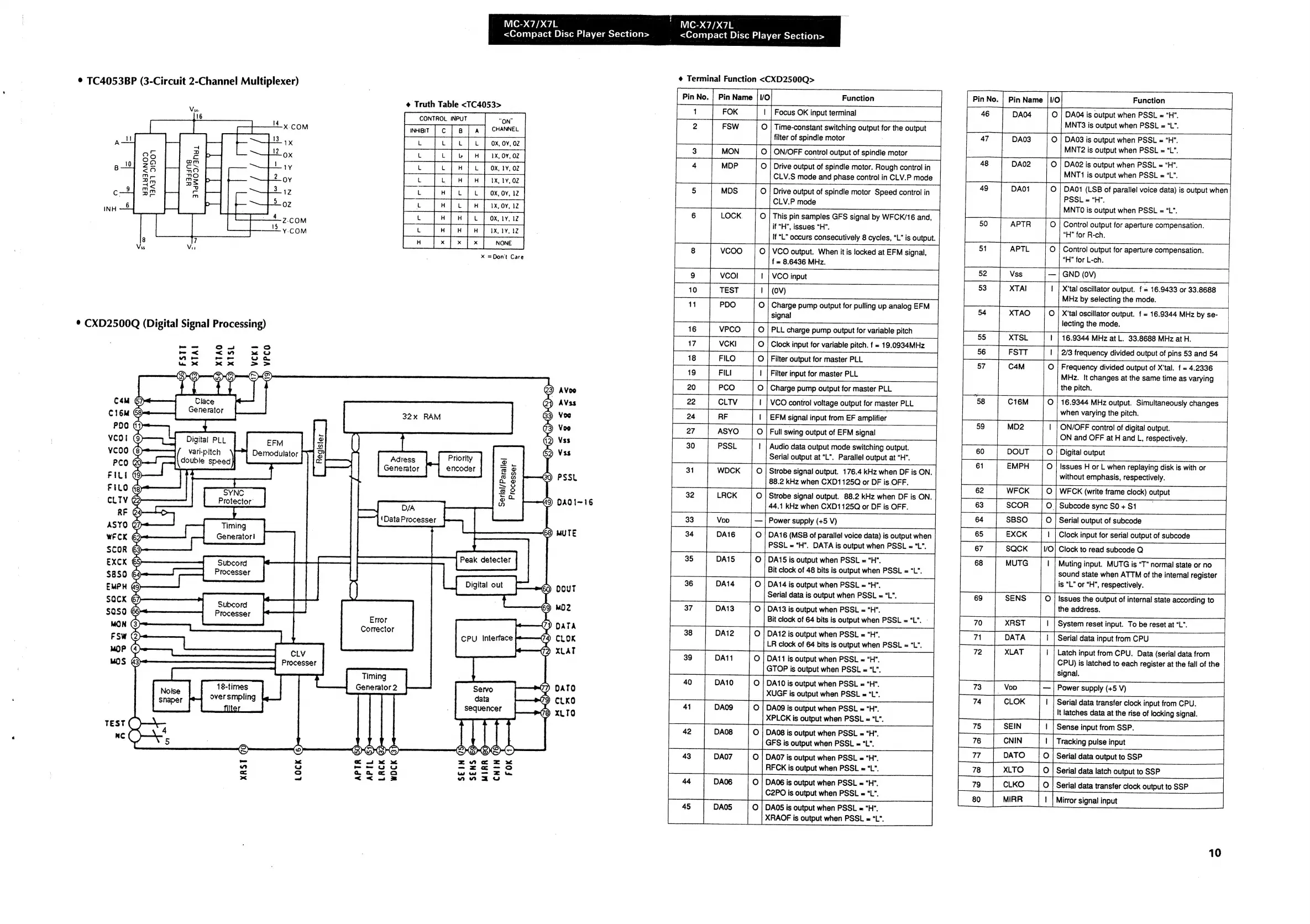 Sansui MC-X7 - IC Functions and Block Diagrams (Continued); TC4053 BP (Multiplexer) Function Details; CXD2500 Q (Digital Signal Processing) Function Details