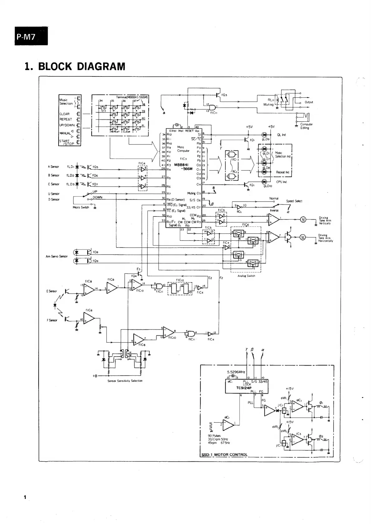 Sansui P-M7 - Block Diagram Overview; Microcomputer and its Connections; Motor Control Circuit Diagram