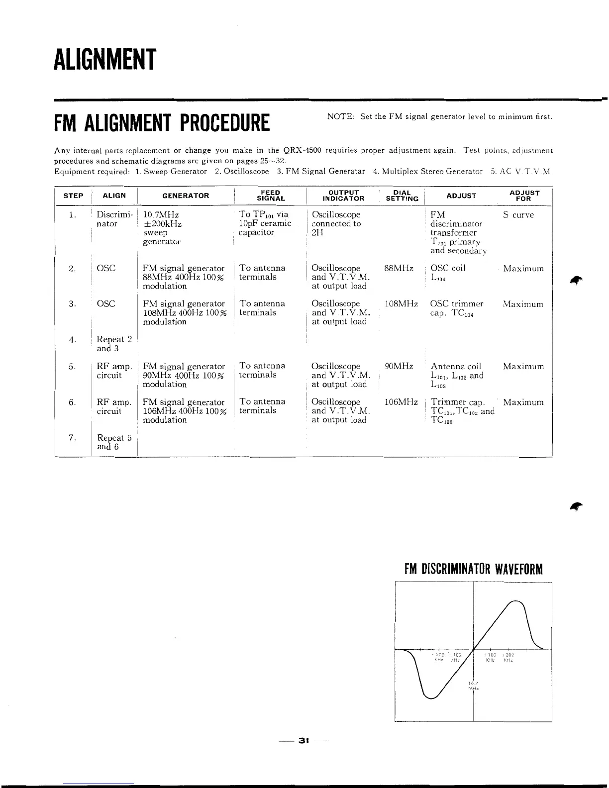 Sansui QRX-4500 - Alignment; FM Multiplex Circuit Alignment; AM Alignment Procedure