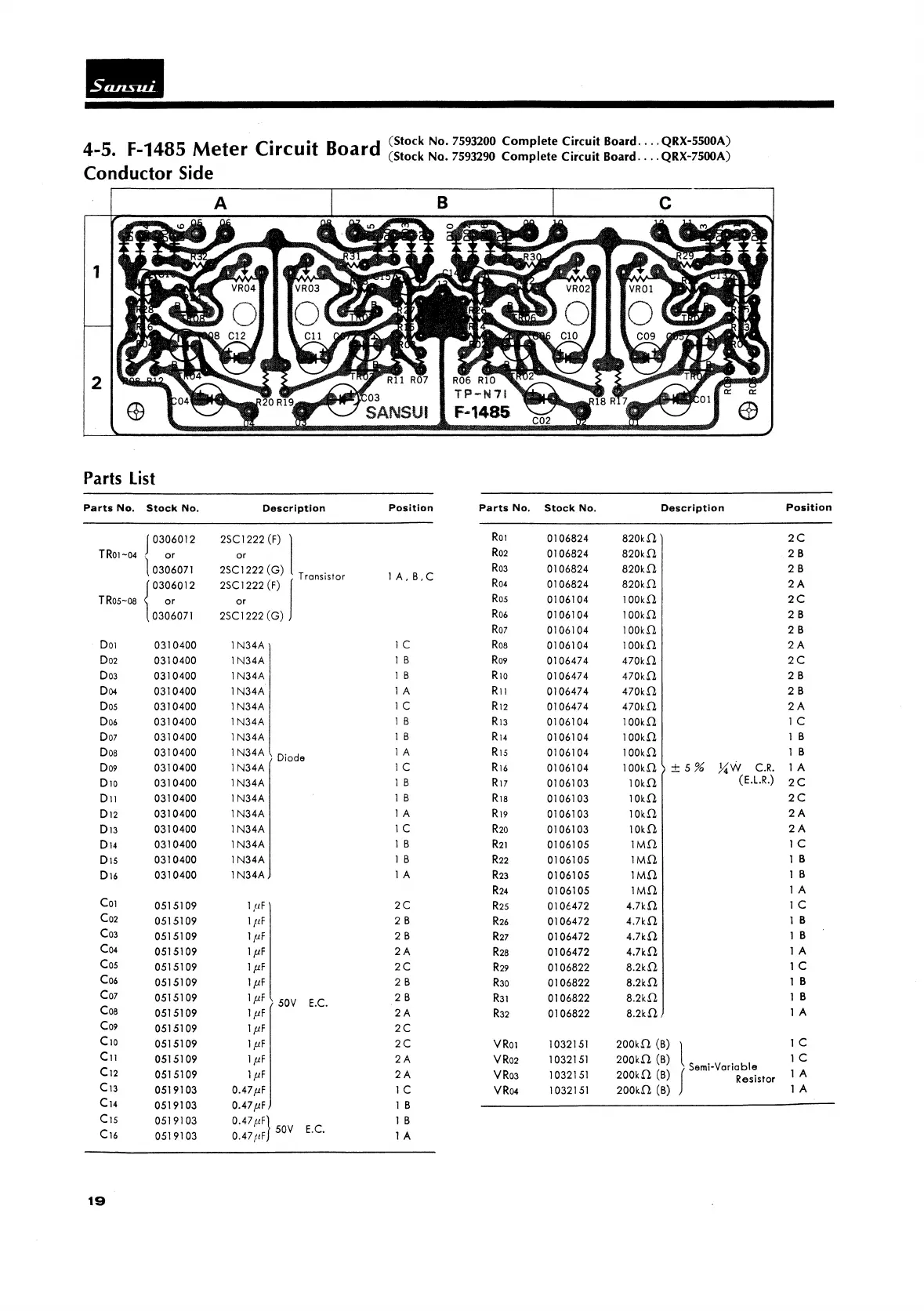 Sansui QRX-5500A - F-1485 Meter Circuit Board