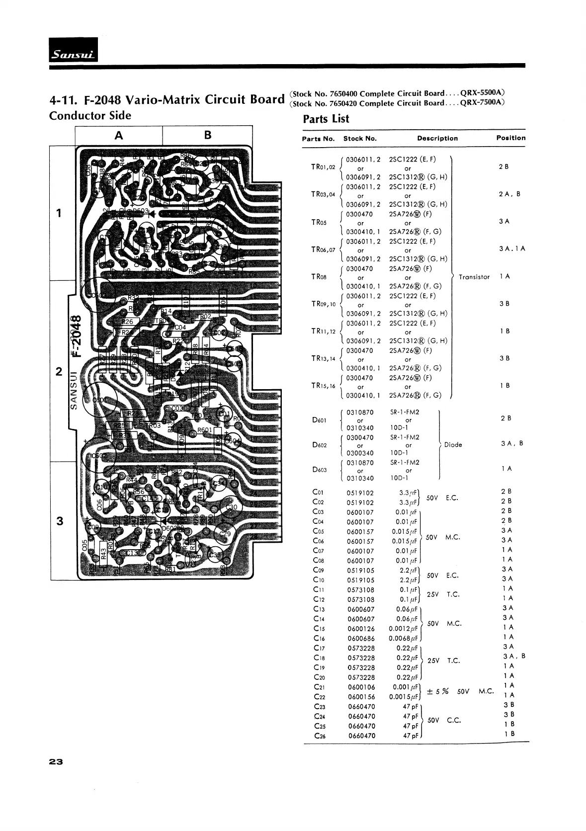 Sansui QRX-5500A - 4. PARTS LOCATIONS AND PARTS LIST; 4-11. F-2048 Vario-Matrix Circuit Board