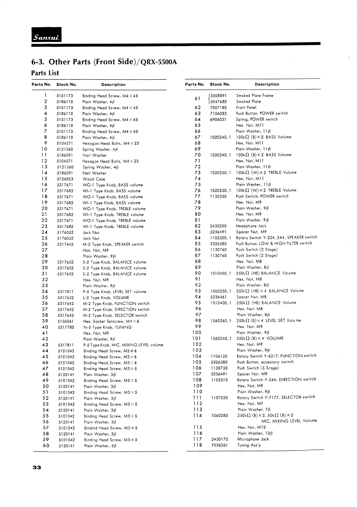 Sansui QRX-5500A - 6. OTHER PARTS; 6-3. Other Parts (Front Side);QRX-5500 A